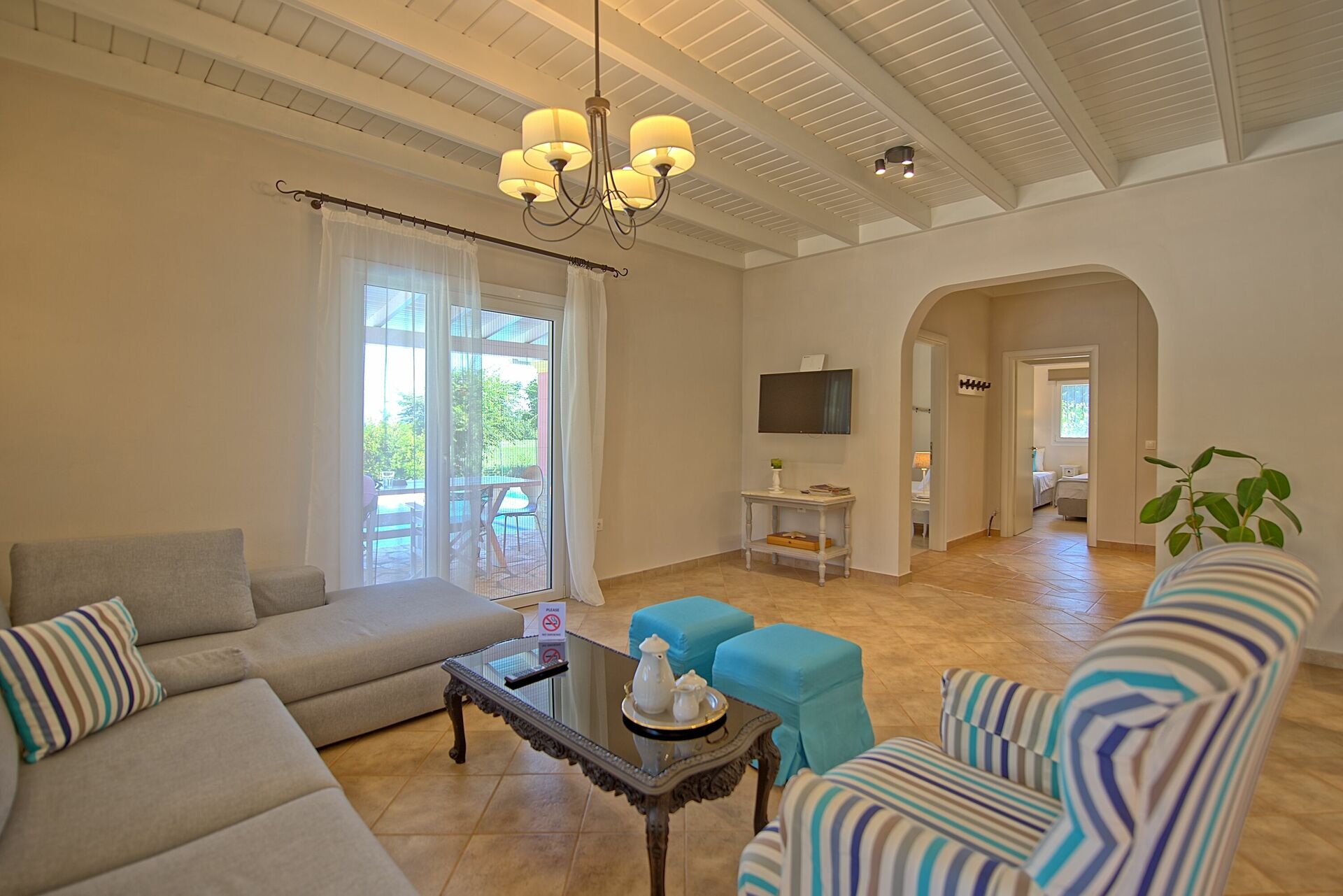 Beach Villa Joanna, Feriehus med basseng i Acharávi på Korfu i Hellas