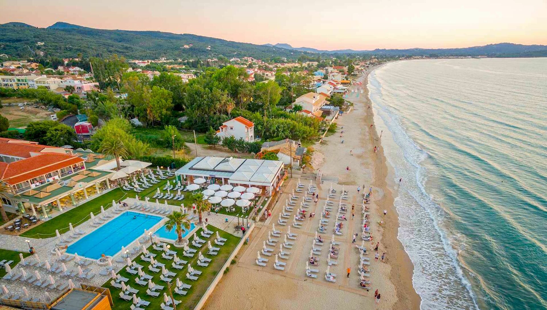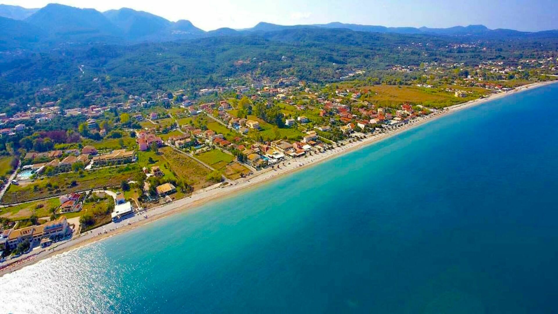 Avstander: Nærmeste strand (sand, med parasoller til leie) 400 meter, restauranter og barer 100 meter, supermarked 200 meter, Korfu by (flyplass) 45 km.