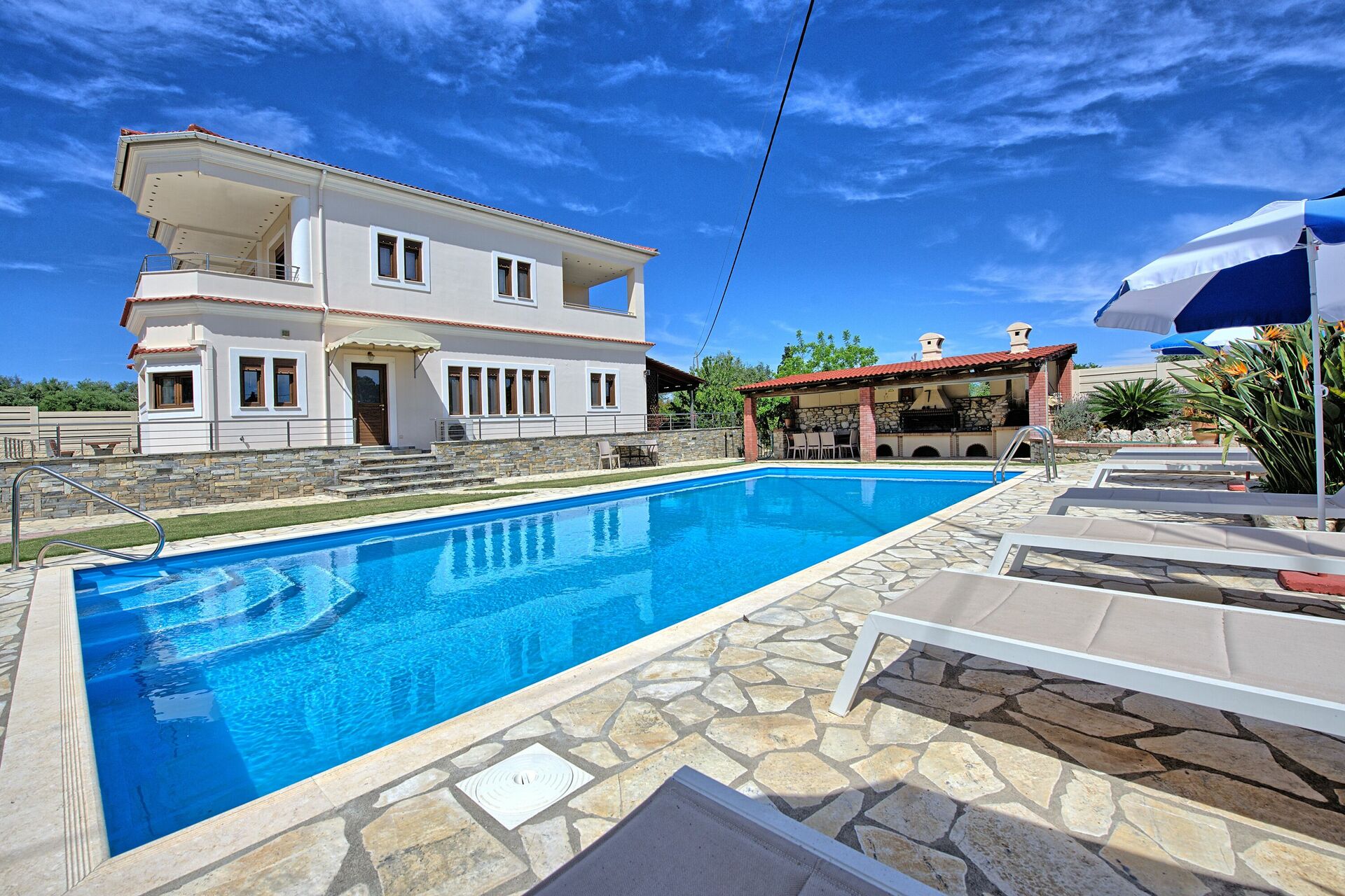 Acharavi Beach Villa er en av de fineste og mest luksuriøse eiendommene i denne badebyen. Huset ligger nær sjøen og har høy standard. Det er brukt eksklusive materialer som marmor, tre og stein. Huset er et perfekt feriested for dem som leter ønsker en uforglemmelig ferie i gangavastand fra sjøen, sandstrand og et bredt utvalg av butikker, restauranter og barer. Feriehuset er omgitt av en stor hage som er vakkert anlagt med terrasser og utstyrt med et stort privat basseng. Hagen er perfekt for å slappe av, sole seg eller spise utendørs måltider tilberedt i pizzaovn/murgrill.