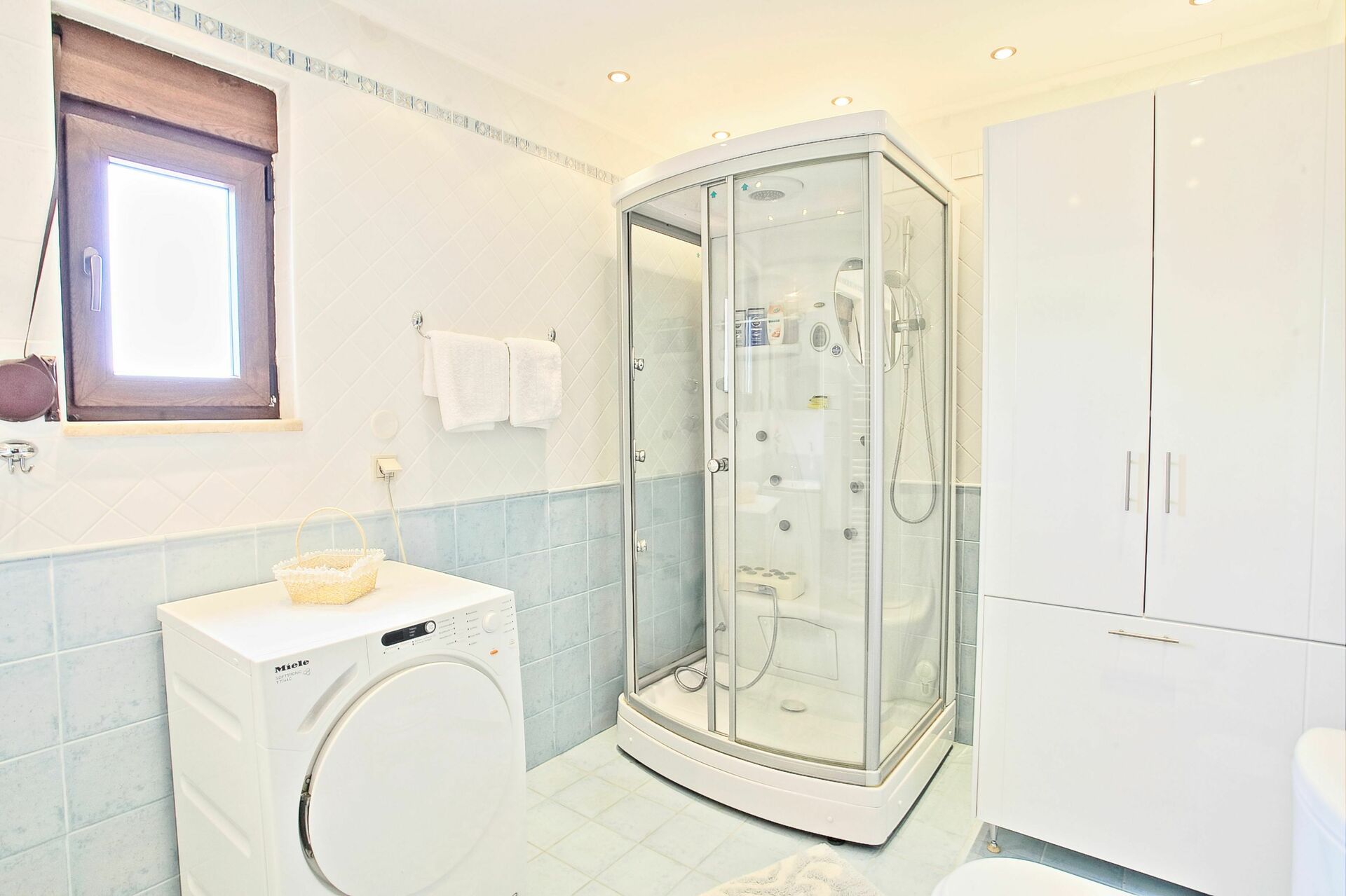 Første etasje: stue med spiseplass (sofaer, lenestoler, satellitt-TV, wi-fi internett, peis, spisebord for 10, klimaanlegg), fullt utstyrt kjøkken med Miele apparater (kjøleskap, fryser, oppvaskmaskin, stekeovn, mikrobølgeovn, marmorflater, lite spisebord), WC, dobbelt soverom (med utgang til terrasse), bad med badekar + vaskemaskin, bad med dusj.