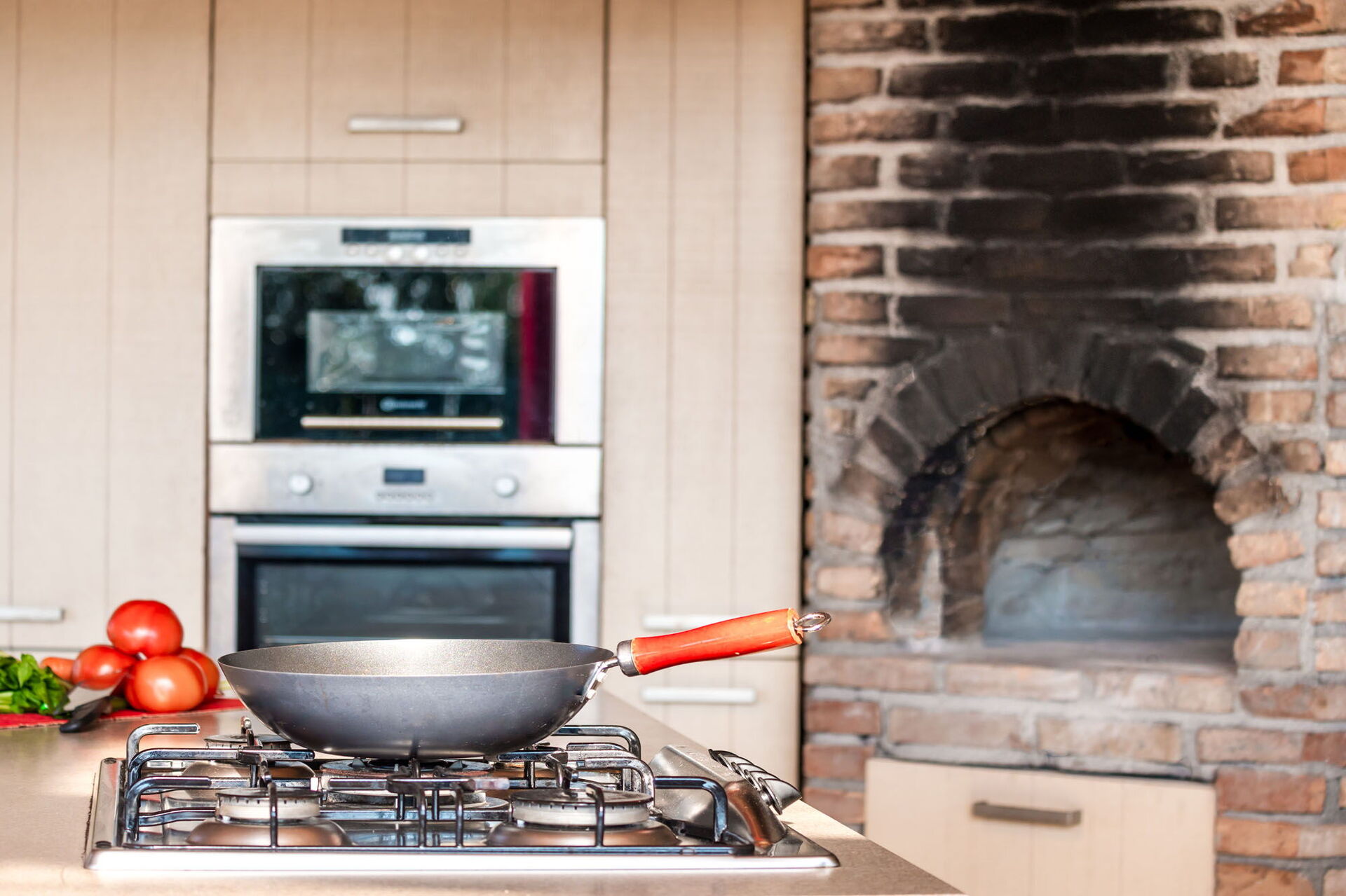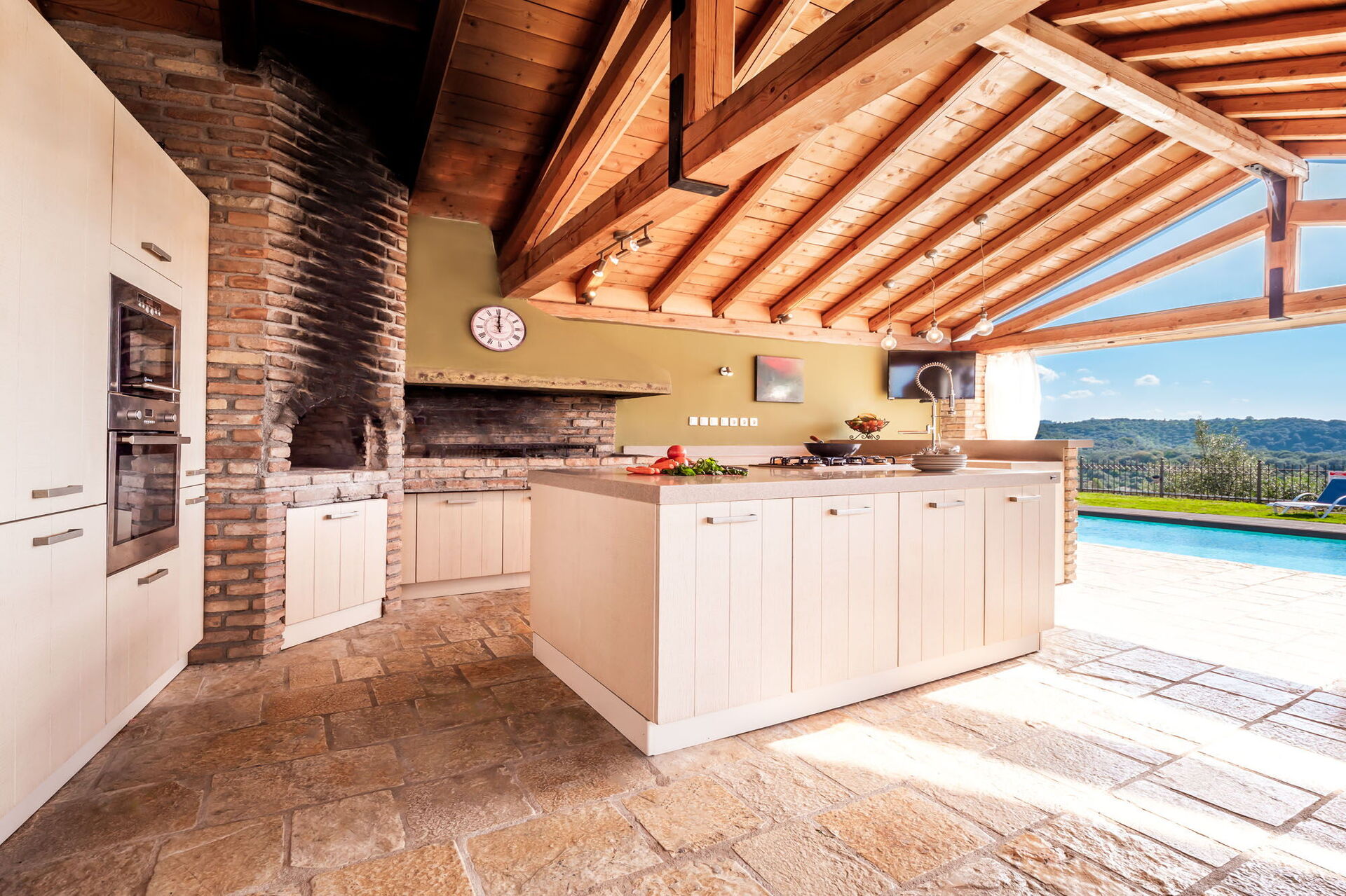 - stort privat uteområde utstyrt med kjøkken, grill og vedfyrt ovn