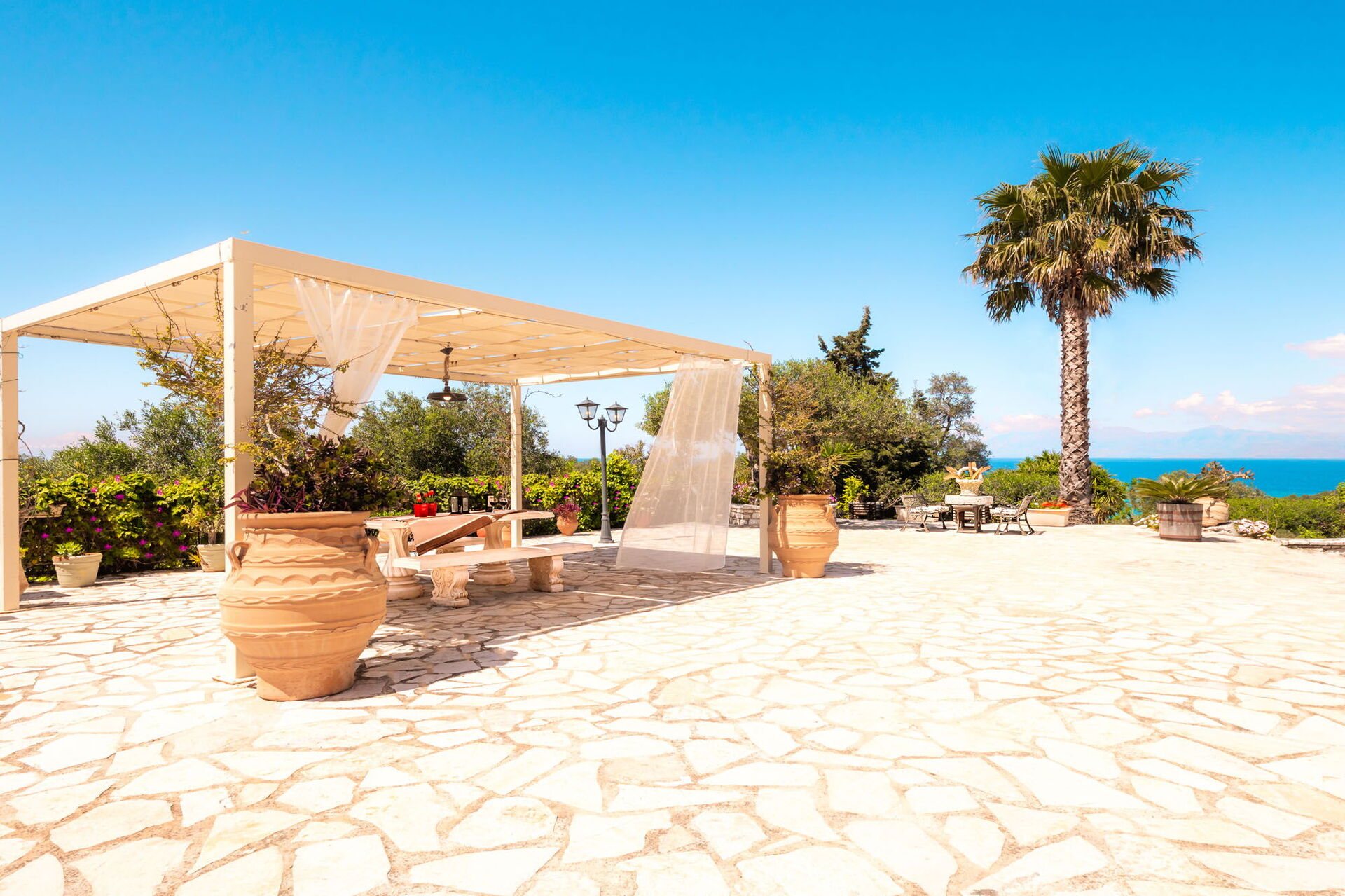 Huset byr på panoramautsikt og har godt utstyrte uteområder hvor du kan koble av og nyte solen på denne fantastiske øya i Hellas.