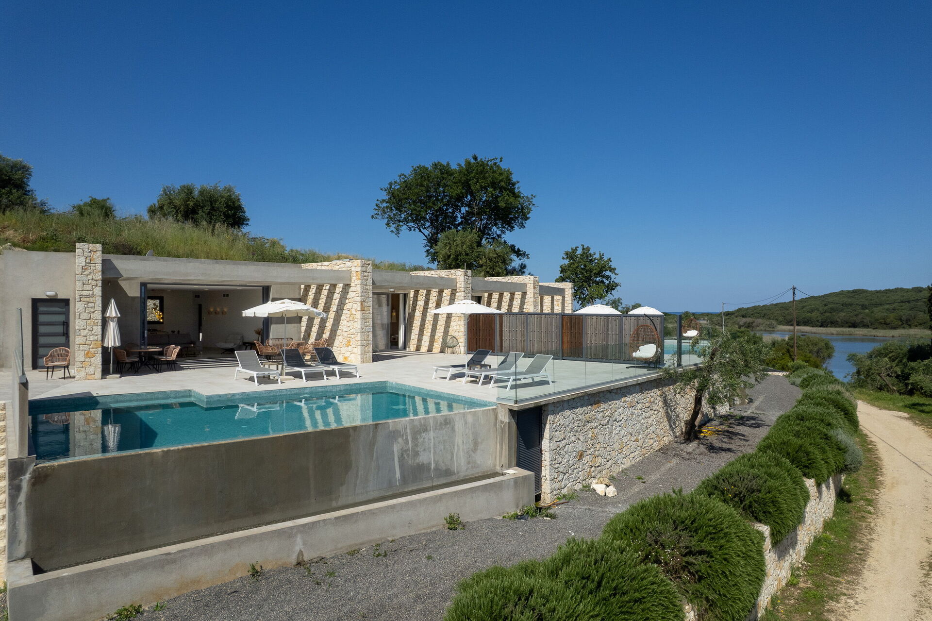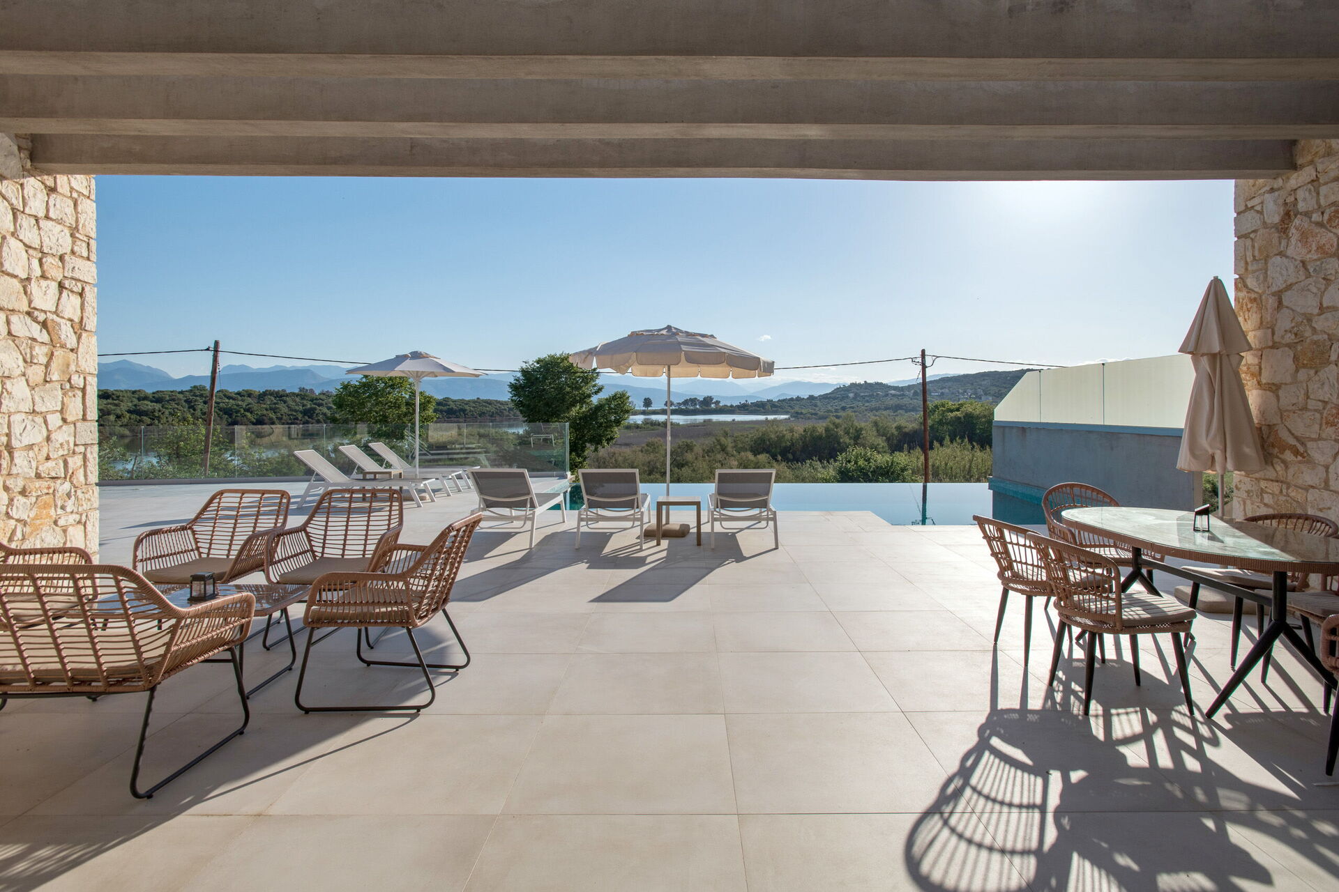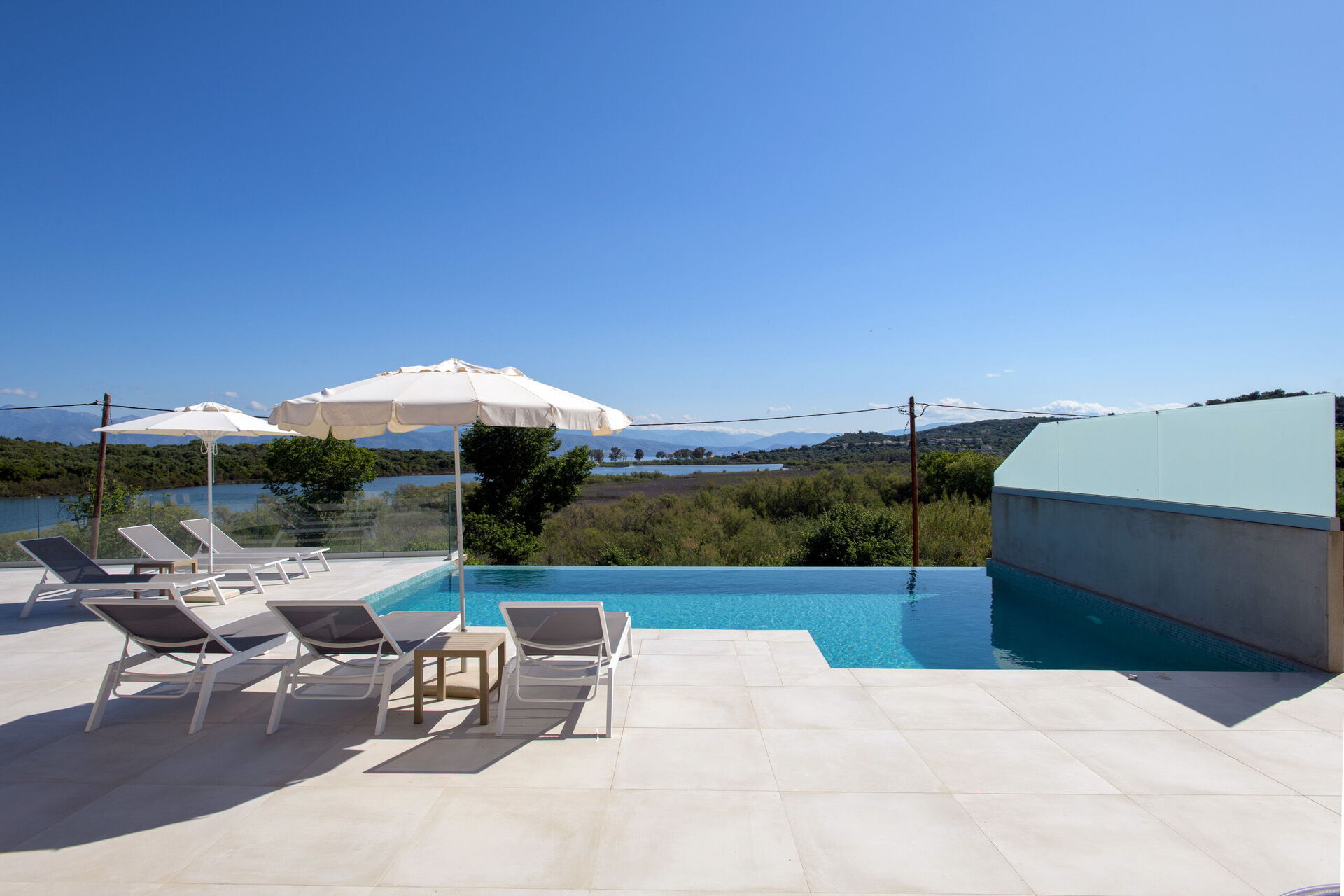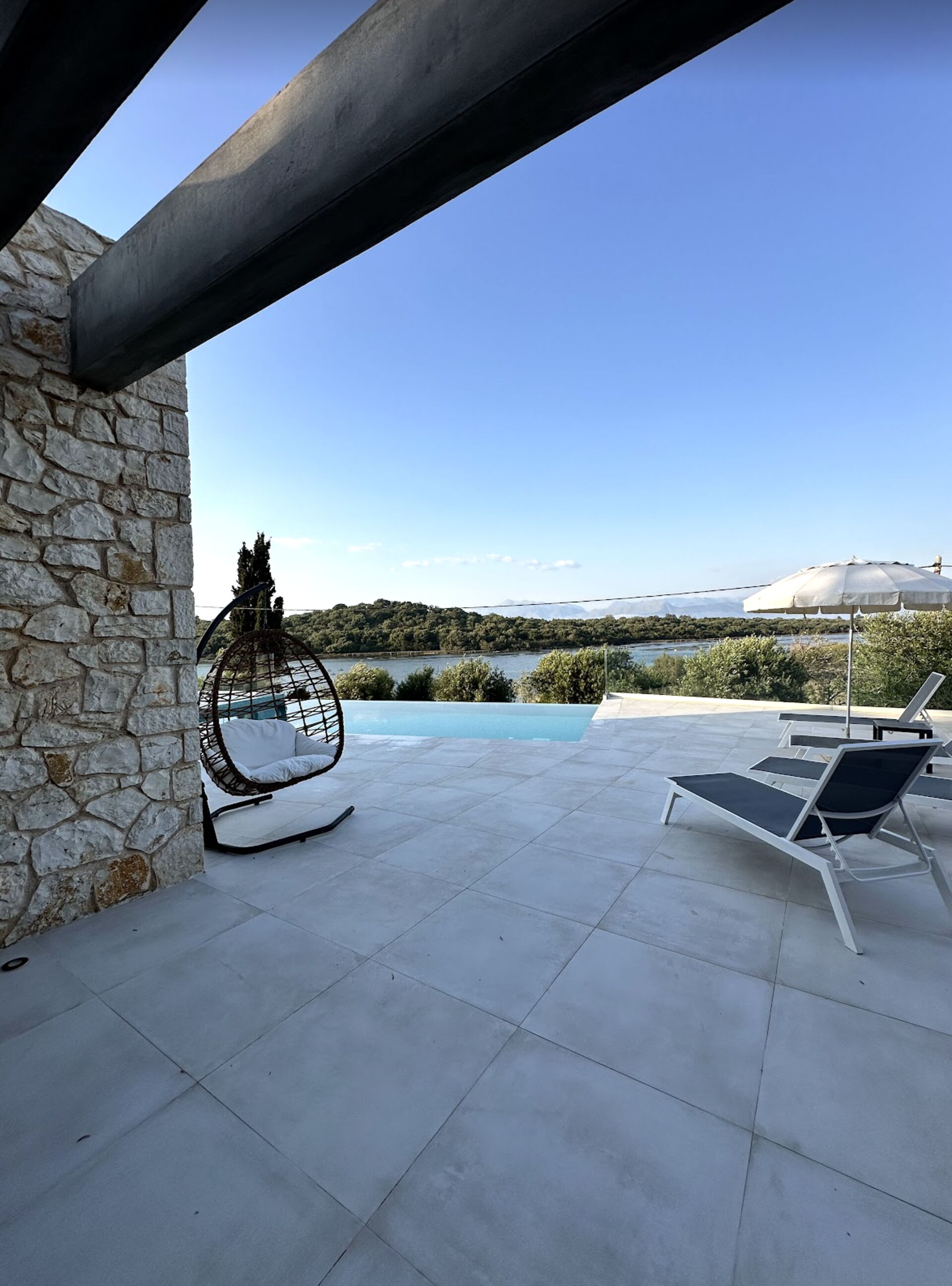 Amazing property, in a great location. within walking distance of a sandy beach with tavernas, mini market. views over the lagoon were lovely and relaxing. the villa itself is finished to a high spec, comfy beds and a great sized pool. Couldn't really ask for more. the road up to the villa is a little rough and on first visit we did wonder if we were in the correct location. The road while quiet, is quite well used by locals and we saw a few people out jogging cycling on this route. We would definitely be back. the welcome we received was lovely and the cleaner could not have been more helpful. Building works going on next door, however this did not really disturb our stay here. Only there for a short while during the day.