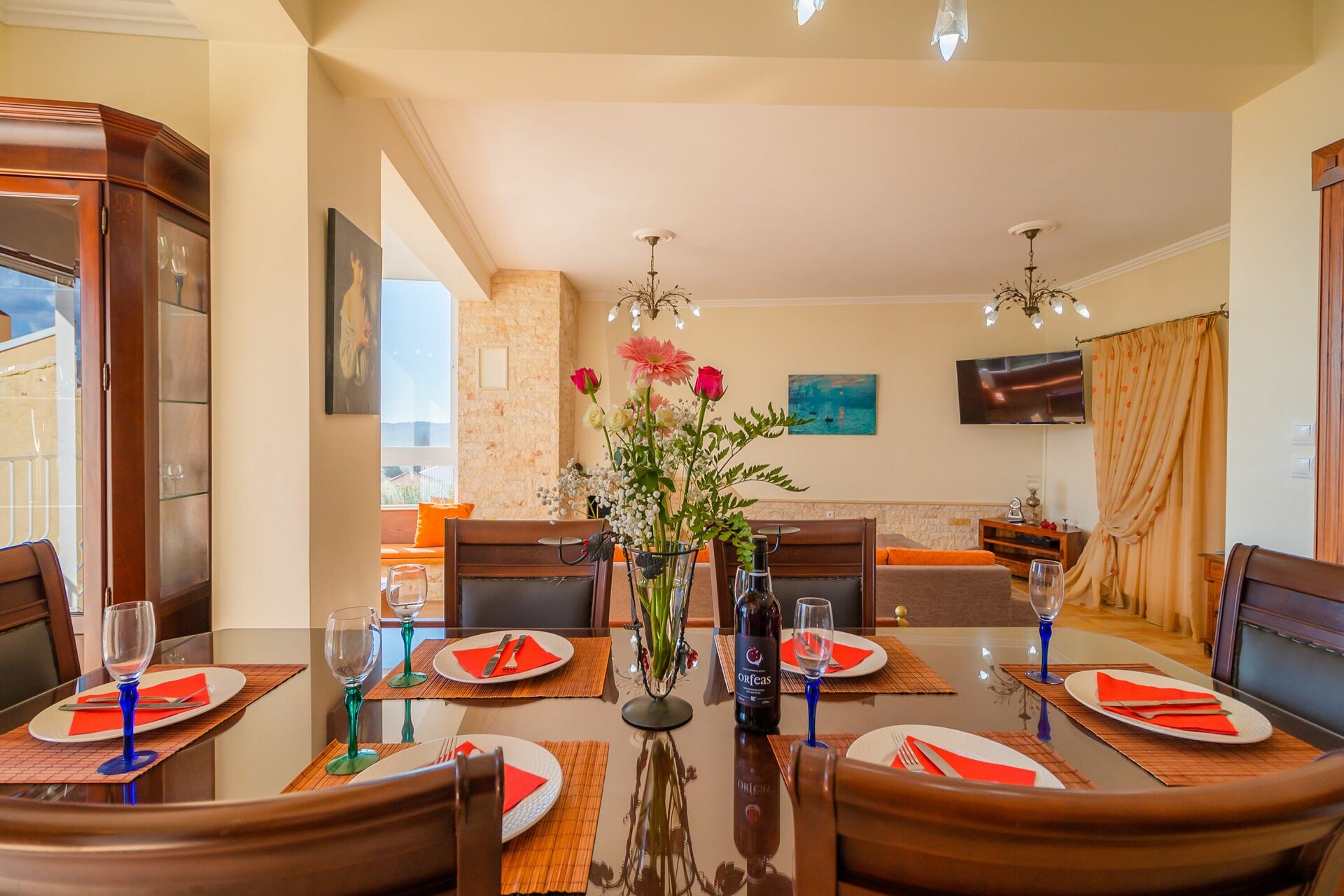 The views are outstanding and it’s a joy to sit on the balcony or in the window seat. It really is so peaceful. Lots of space and comfortable rooms. Thoughtful storage and fully equipped kitchen. The dishwasher is a table top one - felt a waste of electricity to run it so we washed old style!! Would be superb house for a larger family gathering. So much room so nobody is on top of anyone. The village was a bit remote from the areas we enjoyed to spend our time, but it’s a peaceful place to return to at the end of the day and the villagers are friendly and welcoming. Fanis is a lovely host, happy to help in any way, can offer to source you meat or fish and even let us try his own red wine from his vineyard. The village car park is safe for parking rather than using the space outside the villa - unless you rent a tiny car or have full insurance to limit the risk of any knocks. The road is narrow as expected and the locals are so used to them dashing up and down but for visitors they take a little getting used to. There is a village mini shop for breads, milk and juices etc. Doukades is not too far away and has some lovely restaurants. Agios Gordios was our favourite beach. So relaxing and friendly. I would recommend some seat pads for the outside dining table. We’re tall and even for us the chairs are too low for the table height. lots to like about this villa - We had a great stay here. Fanis is welcoming, warm and friendly. Helpful and delightful to his guests.