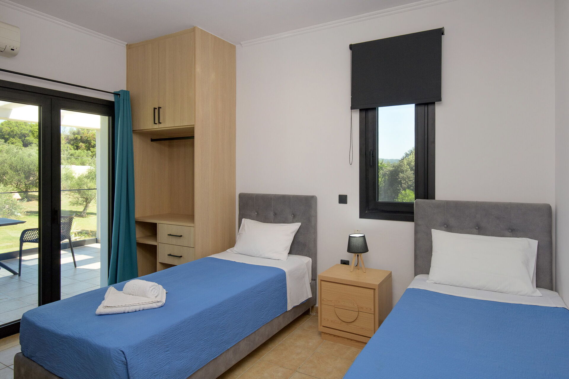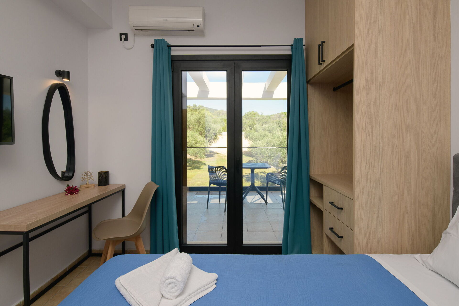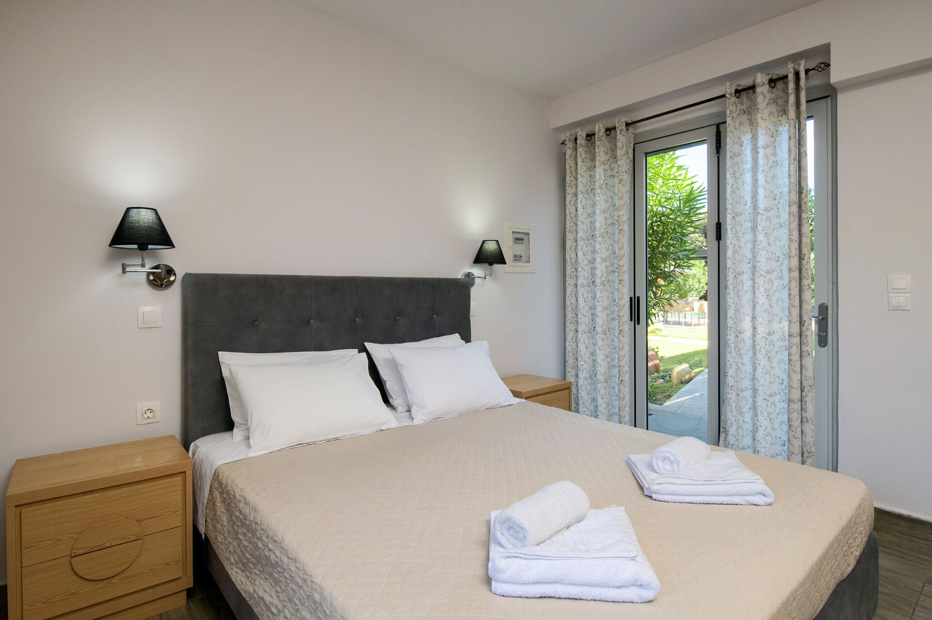 Eiendommen ligger nær havet og den kjente Chalikounas-stranden – en fortryllende stripe med gyllen sand som skiller Korission-lagunen fra havet. Dette er et populært område blant surfere og kitesurfere på grunn av vindforholdene her.