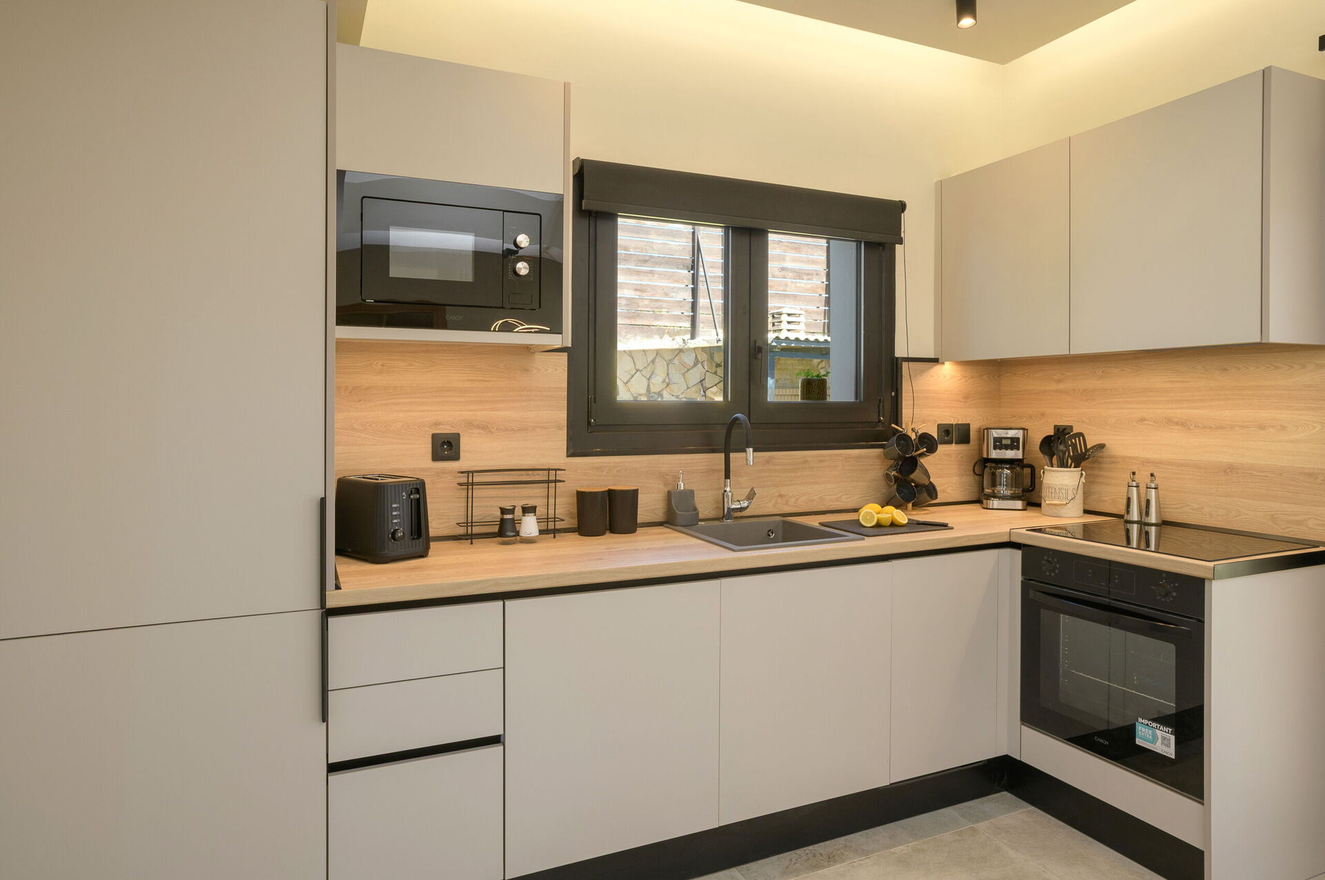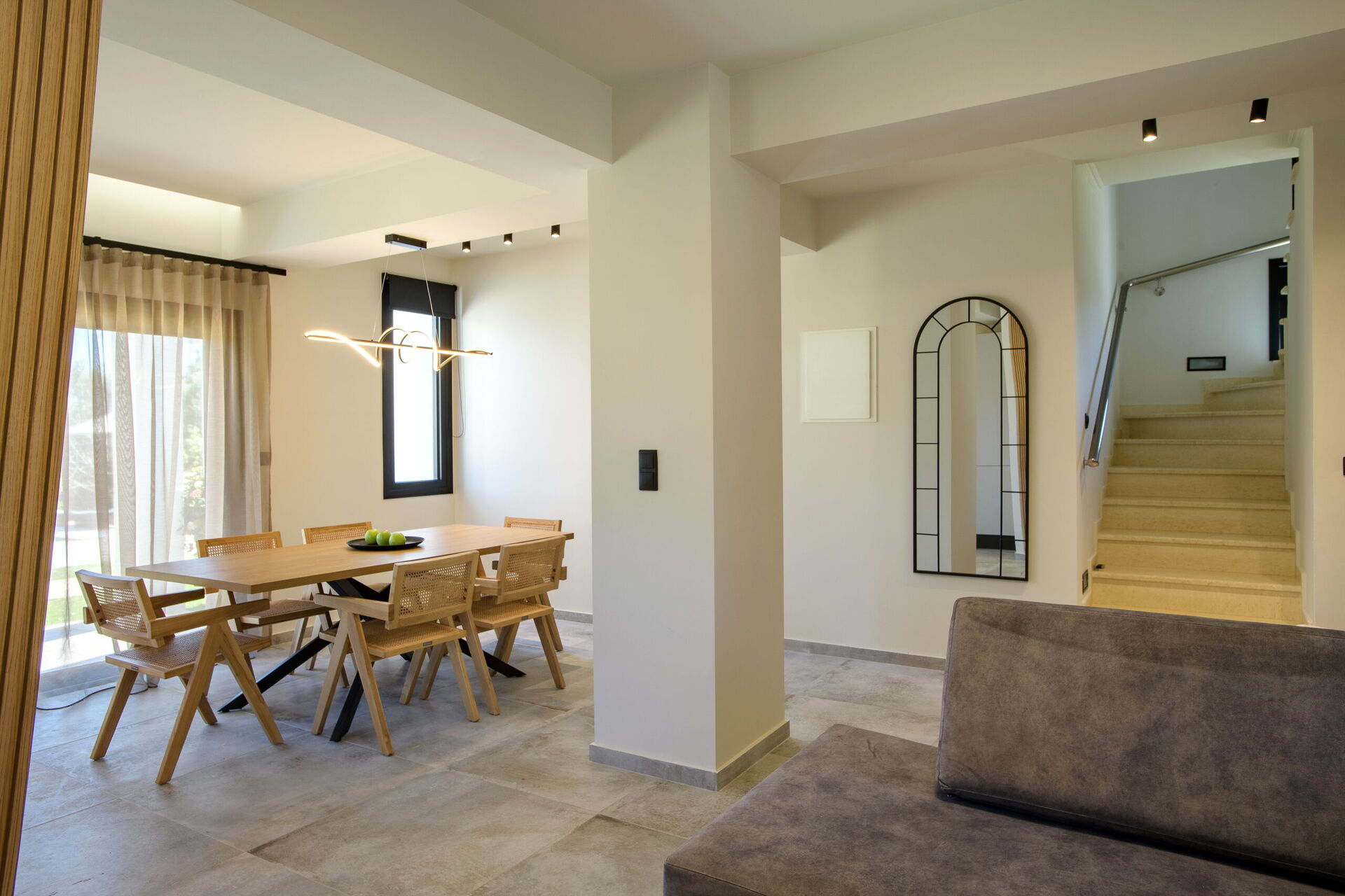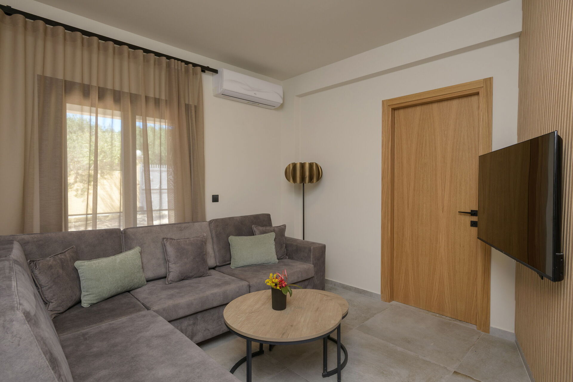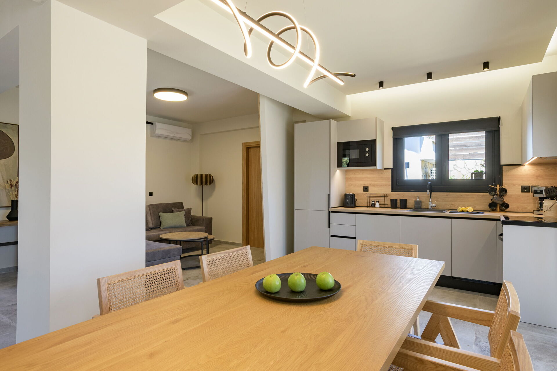 Eiendommen ligger nær havet og den kjente Chalikounas-stranden – en fortryllende stripe med gyllen sand som skiller Korission-lagunen fra havet. Dette er et populært område blant surfere og kitesurfere på grunn av vindforholdene her.