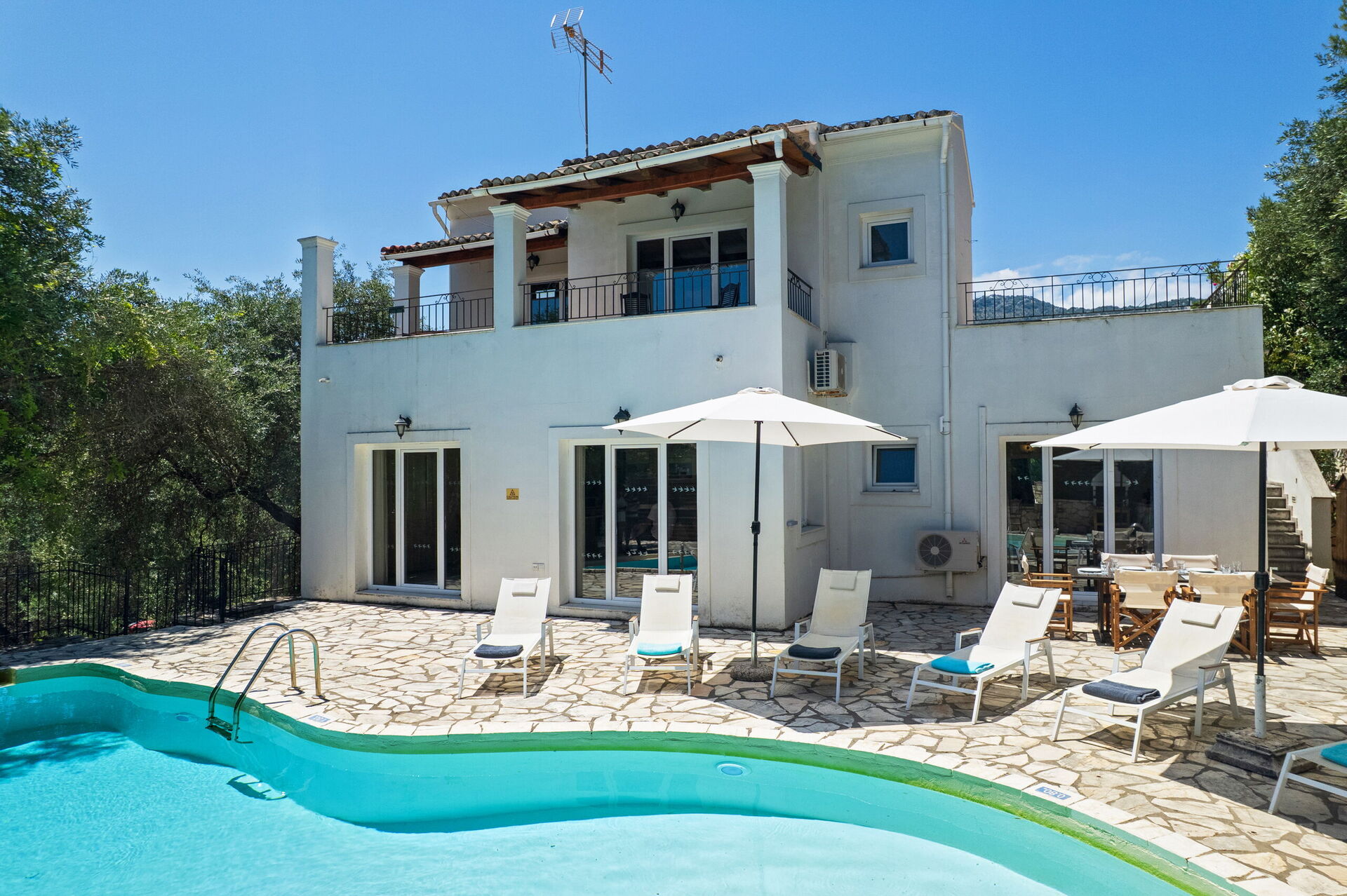 SIZE: Given that there are only three bedrooms (two upstairs, one ground floor), this is a large villa. The bedrooms themselves are sizeable and the main living area is equally substantial. Five or six people are comfortably accommodated. Excellent balcony areas, albeit with slightly restricted views across to Albania.