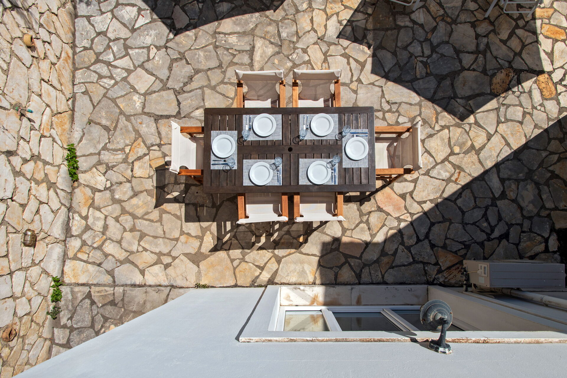 VEHICLE ACCESS. If you book this villa and hire a car to get there, almost certainly you will choose a reasonably large vehicle as only such a vehicle can fit five or six people plus their luggage. Doing this makes sense but you will have a nightmare when you arrive. Access to the villa is via a 90 degree turn off the main street down to the harbour, which is likely at most times to be very busy. The access road has a stone wall on each side and the car we used (a Mercedes of similar size to an Audi A3) had every alarm blaring simultaneously as clearance (especially as you make the initial turn) is no more than a few inches on each side. When you arrive, it is almost impossible to turn into the parking area immediately below the villa, and when you are in, it is almost impossible to get out (again, a 90 degree turn into a narrow road). If you were driving your own car, you might not mind picking up a few scratches or dents, but if you have a hire car, you will be slightly more concerned. SOLUTION: There is a car park near the town centre which costs 5 Euros per day. It is 400 metres from the villa, but you can buy tickets for the whole week (or longer) from the extremely helpful car park staff and keep the car there all week. The only downside is that the gates are shut late at night and do not re-open until 0900 hrs. But after one horrible experience getting the car in and out again when we first arrived, we kept the car in the car park all week and that was fine.