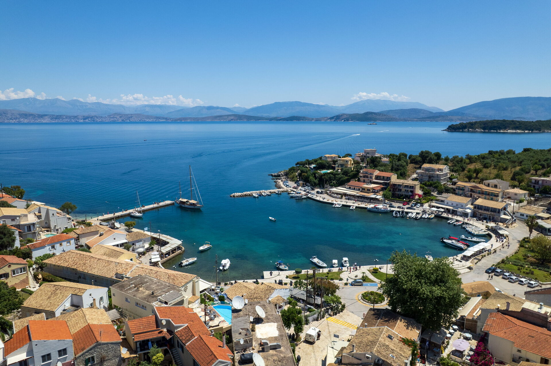 Avstander: Kassiopi (butikker, restauranter, strender) noen få meter unna; Acharavi på 12 km, Korfu by (flyplass) 35 km.