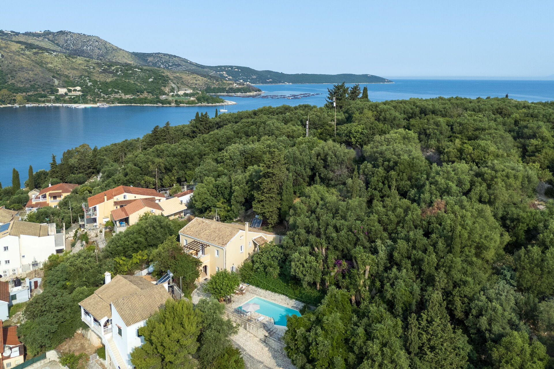 Villa Moyria, Feriehus med basseng i Kassiópi på Korfu i Hellas