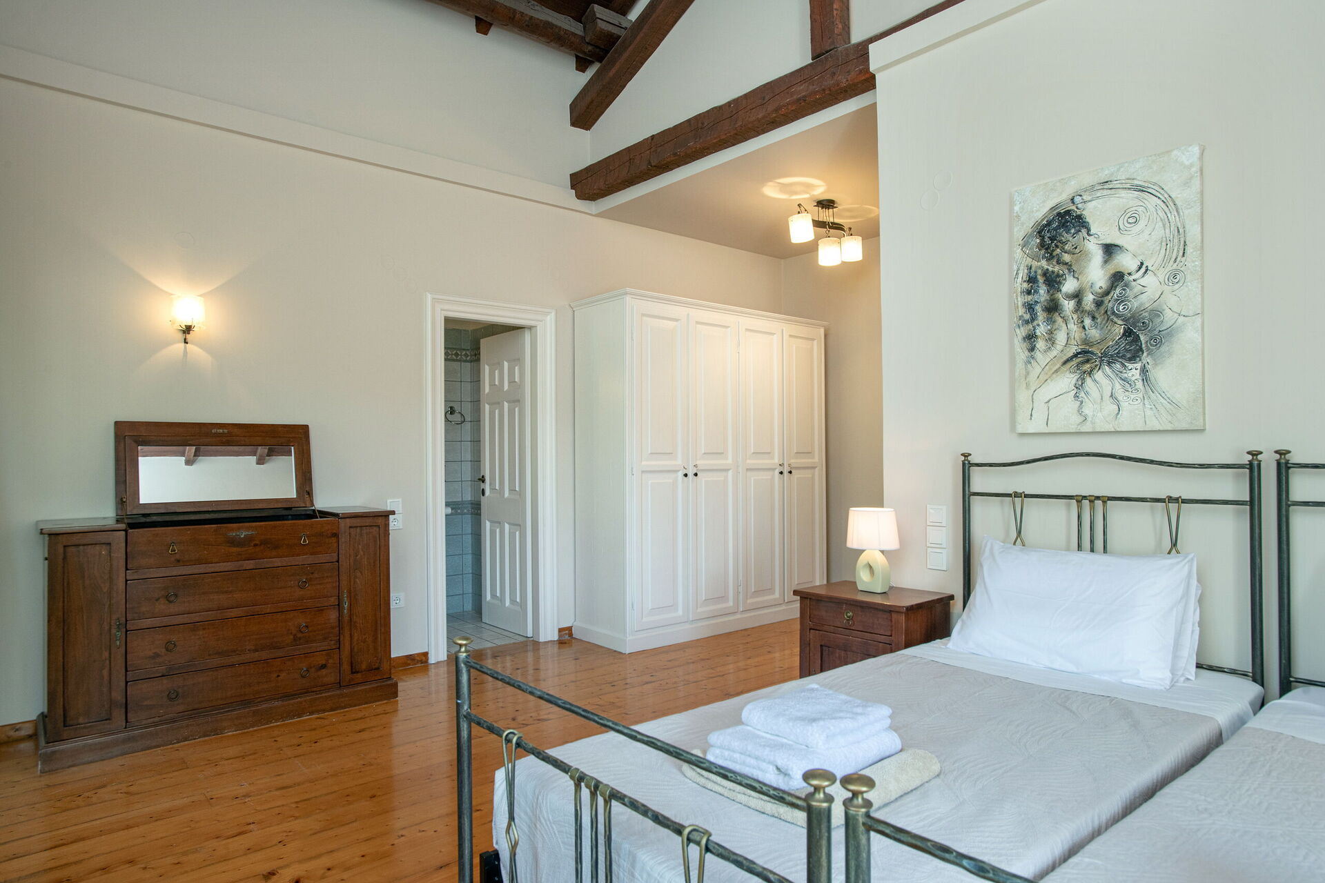 Huset er pent innredet med tanke på å gi gjestene god komfort under oppholdet. Villa Moyria har 3 soverom og plass til 6 personer i lyse og store rom.