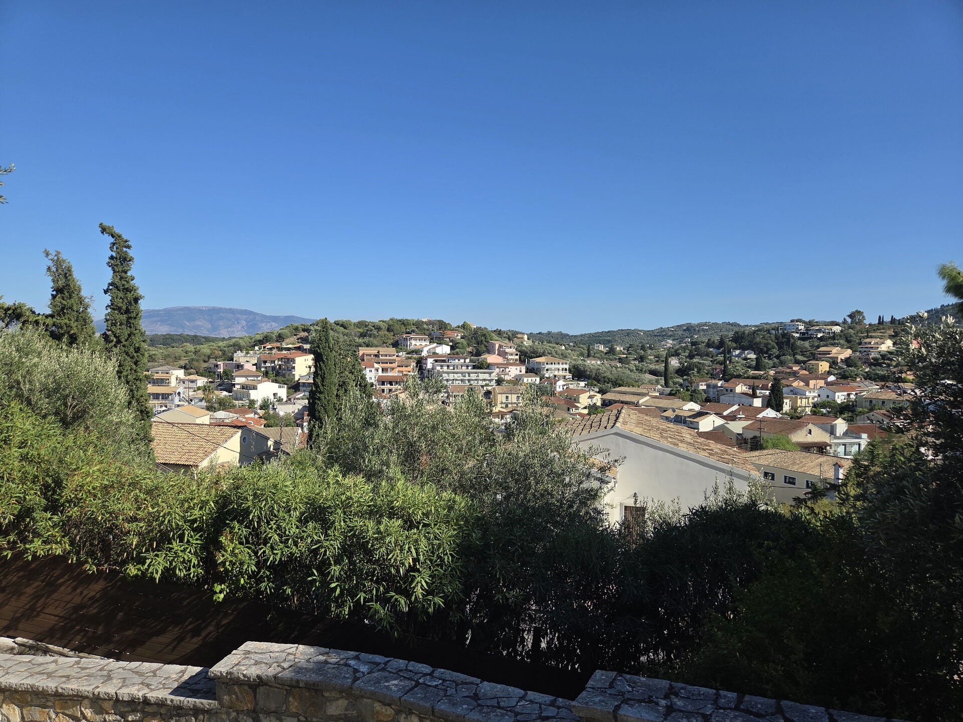 Overall we had a nice stay - Kassiopi is lovely, pretty, close to nature and lots of good restaurants. Staff responded quickly to all queries. The house was spacious, pretty and a good location but felt like we paid too much: - Needs more proactive maintenance. E.g. the aircon unit in one bedroom leaked water all over the floor. When we noticed the next morning, we told them and they were quick to respond but it took over a day to find someone to fix it. Another unit had had a bottle placed over the end for some time which shouldn't have been there. On the last evening the water stopped working, we let them know the next morning based on signs saying to contact them only if the outage was longer than 4 hours - which resulted in leaving without being able to shower the last day. - Some of the pool paint came off while using it so we got blue skin after using the pool - The kitchen was equipped with essentials but not more - didn't have 6 dinner plates for instance