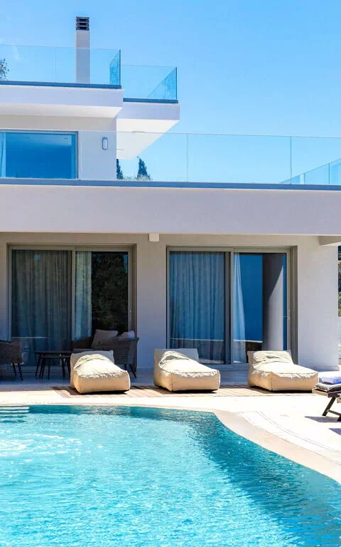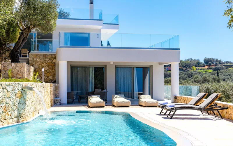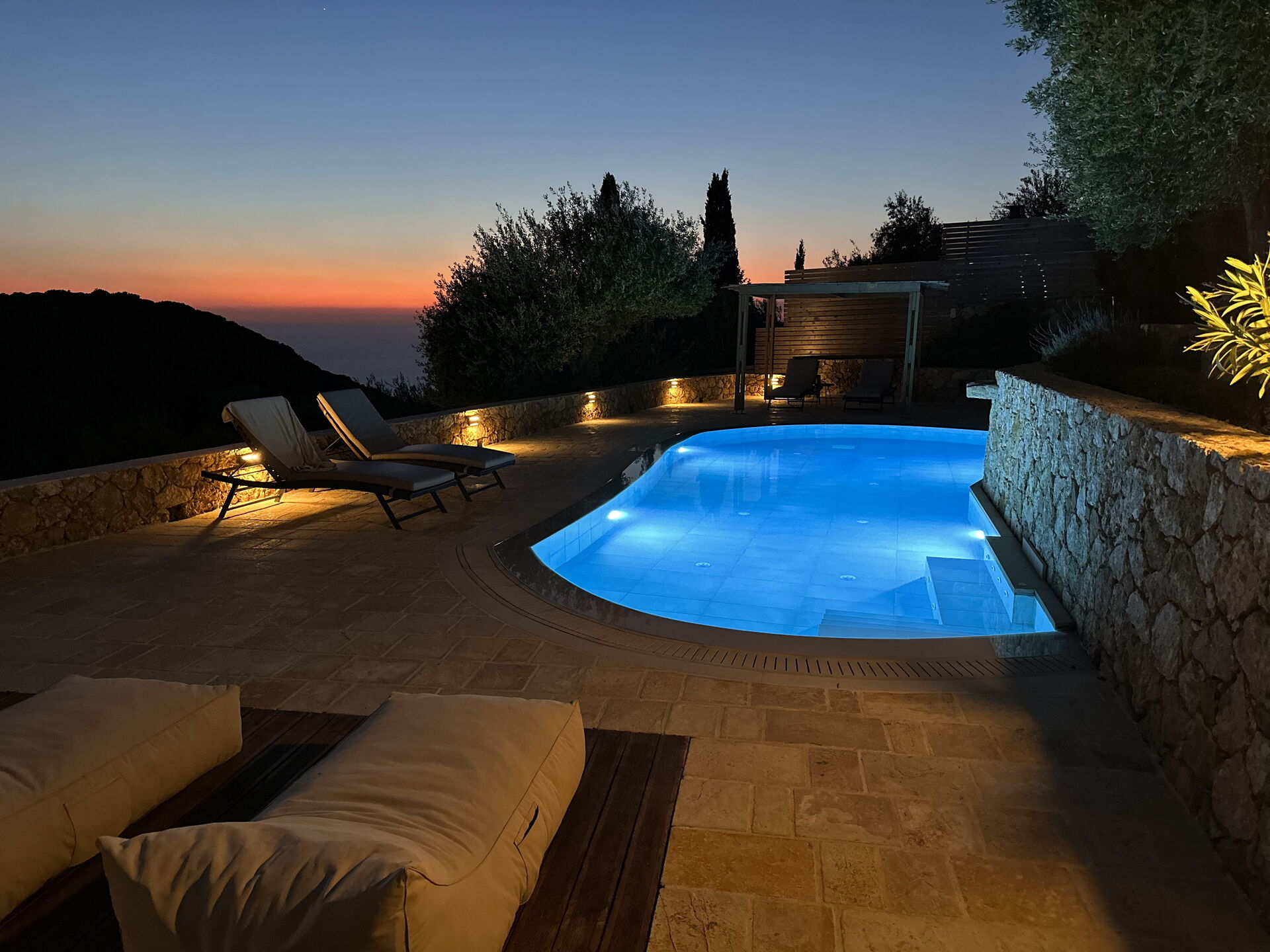 Is a brand new secluded villa with beautiful views over the mountains of Corfu, the surrounding sea and its islands. It is tastefully furnished and has a beautiful pool area. Our host was very attentive and whenever we had any issues, she tended to our needs right away. The rooms are comfortable and provide plenty of privacy. Since the house is quite remote, a car is necessary and being a good driver doesn’t hurt either, given the extremely windy roads. Highly recommended overall.