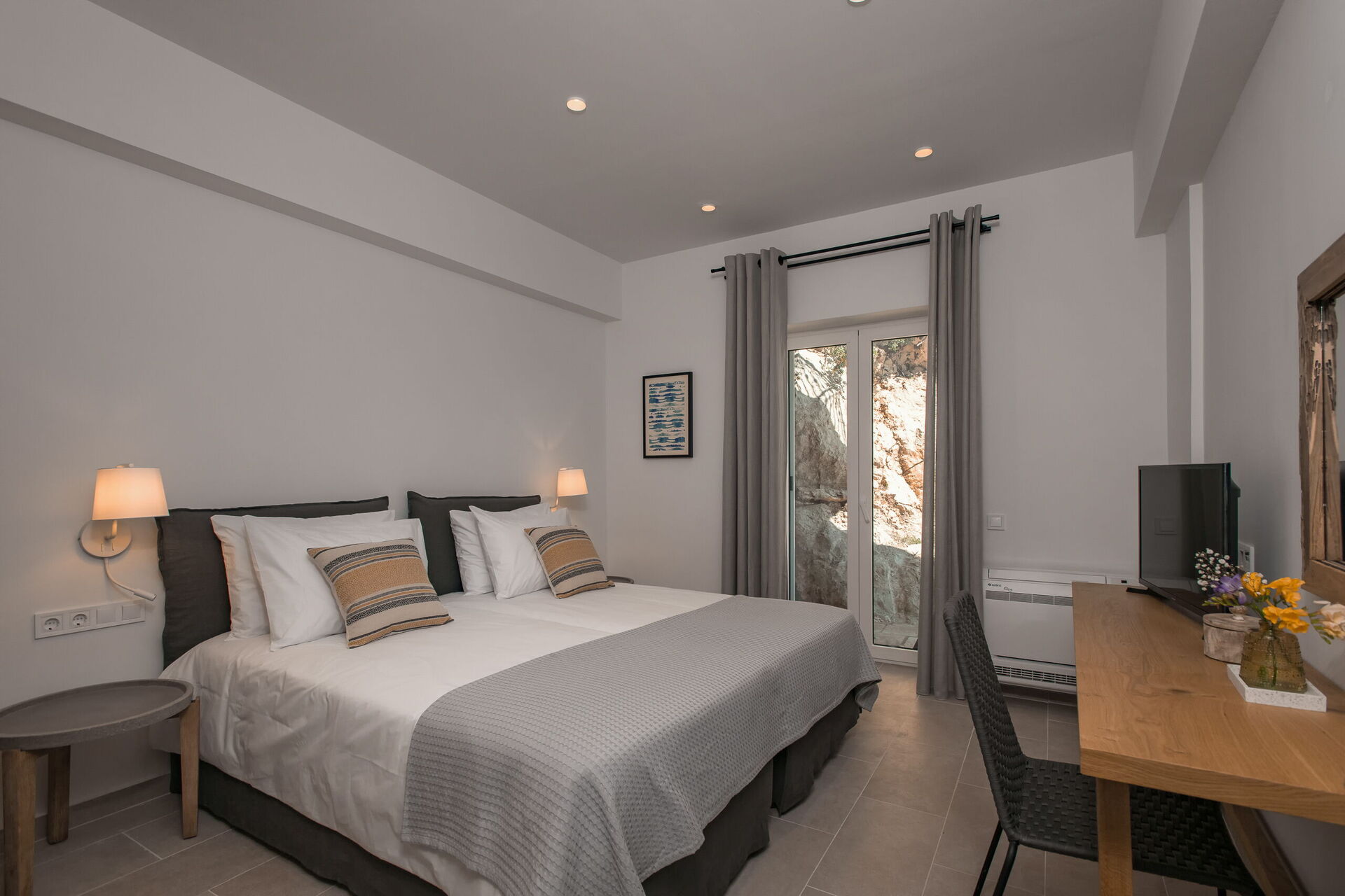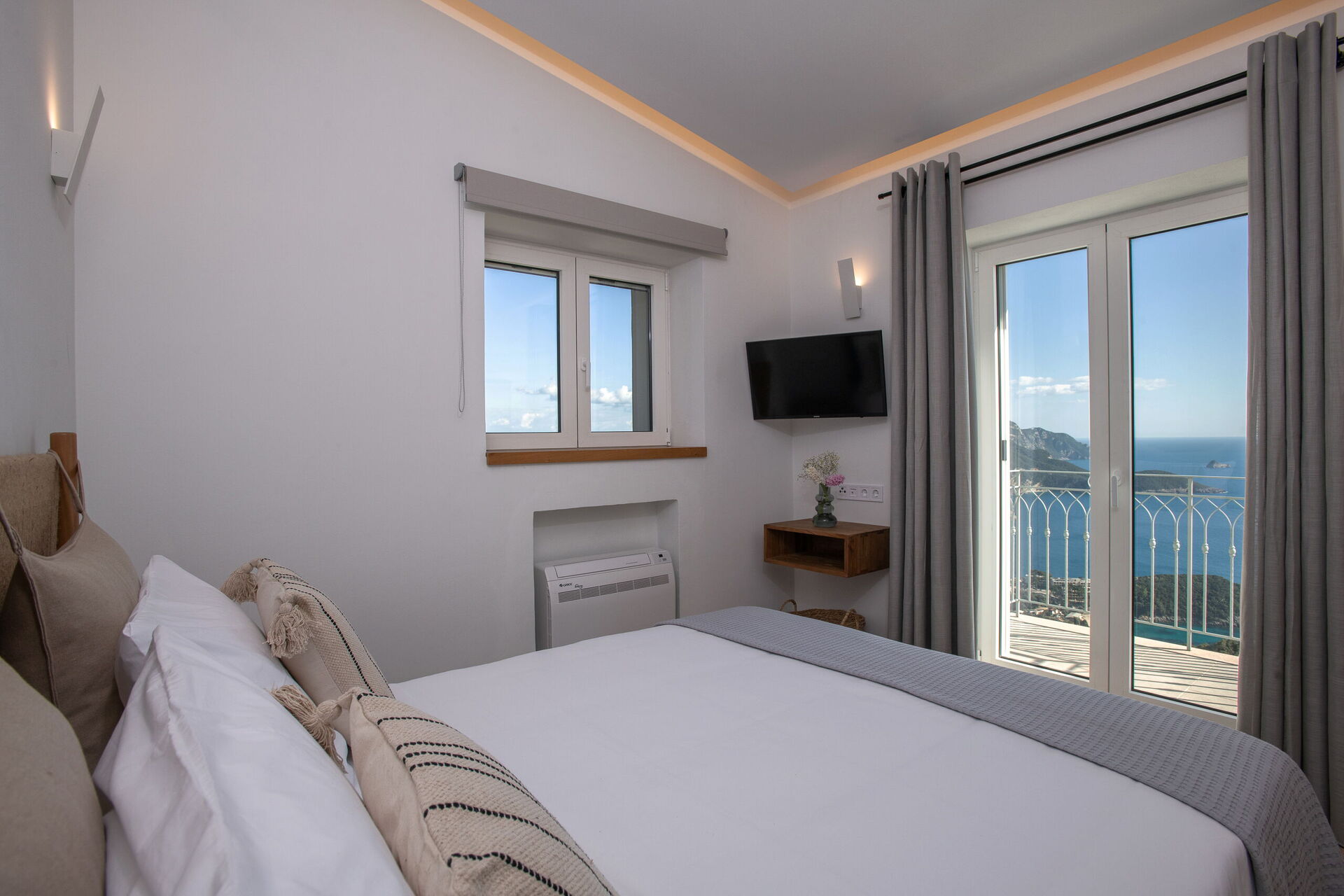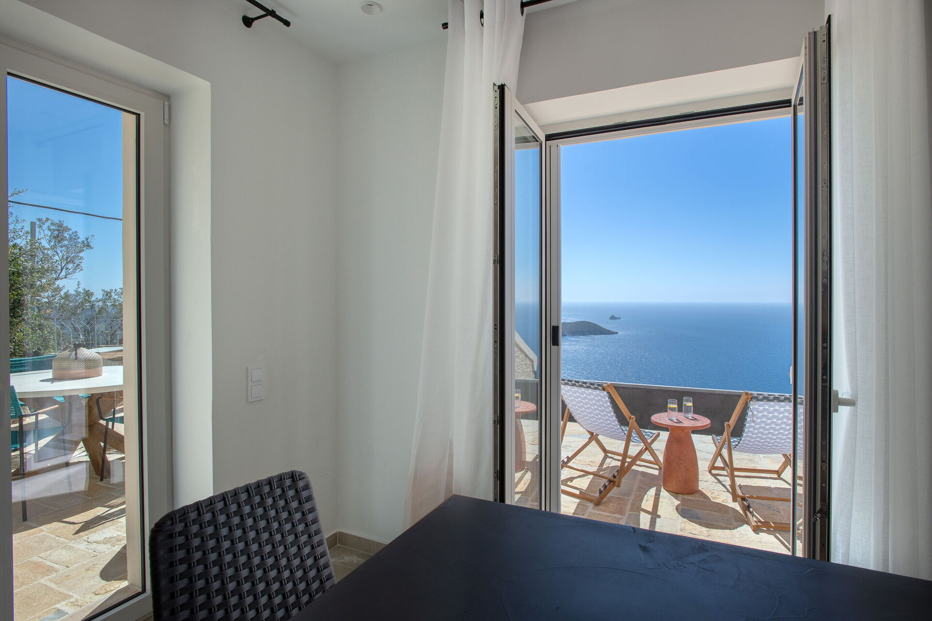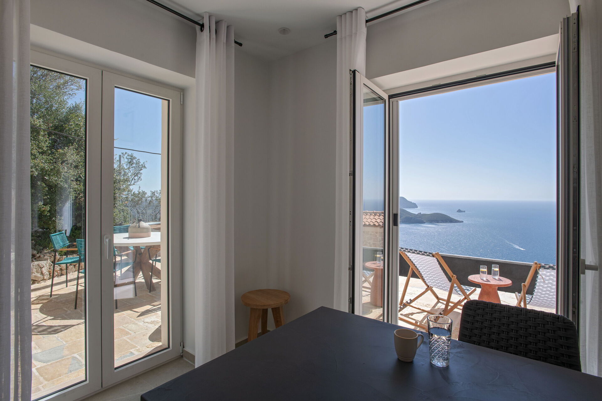 De store vinduene gir rikelig med naturlig lys og vakker utsikt, brisen kjøler ned selv de varmeste sommerkveldene, og Villa Thea Mare Levantes har alt som skal til for at du skal få en herlig ferie ved havet på Korfu!