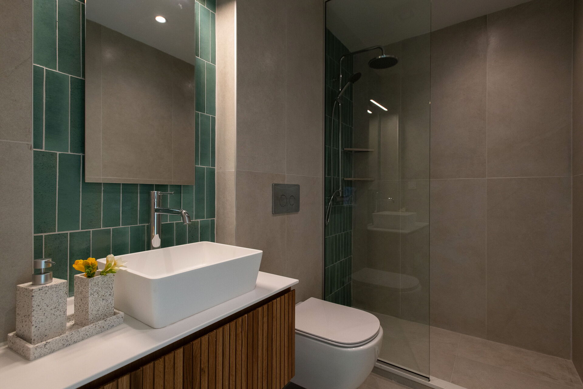 1 dobbeltrom med eget bad med dusj, 1 twinrom med eget bad med dusj