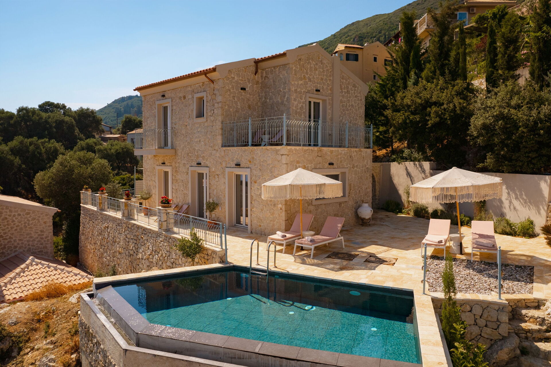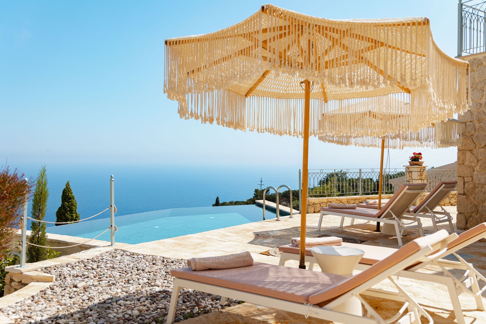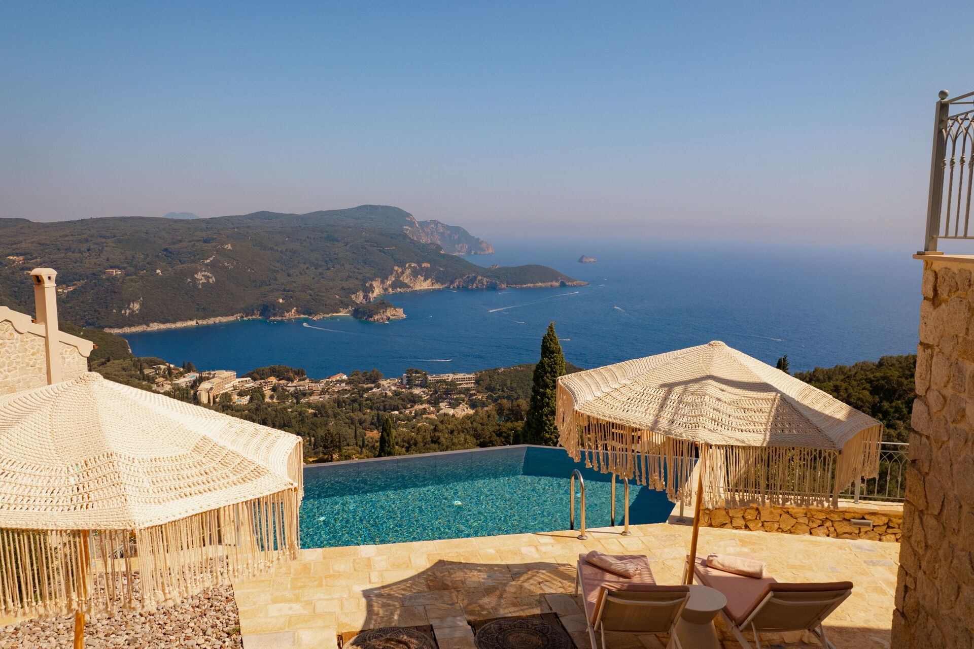 På det panoramiske uteområdet finner du et vakkert og privat svømmebasseng med bassengdekk, hvor du kan nyte de solfylte dagene på Korfu.