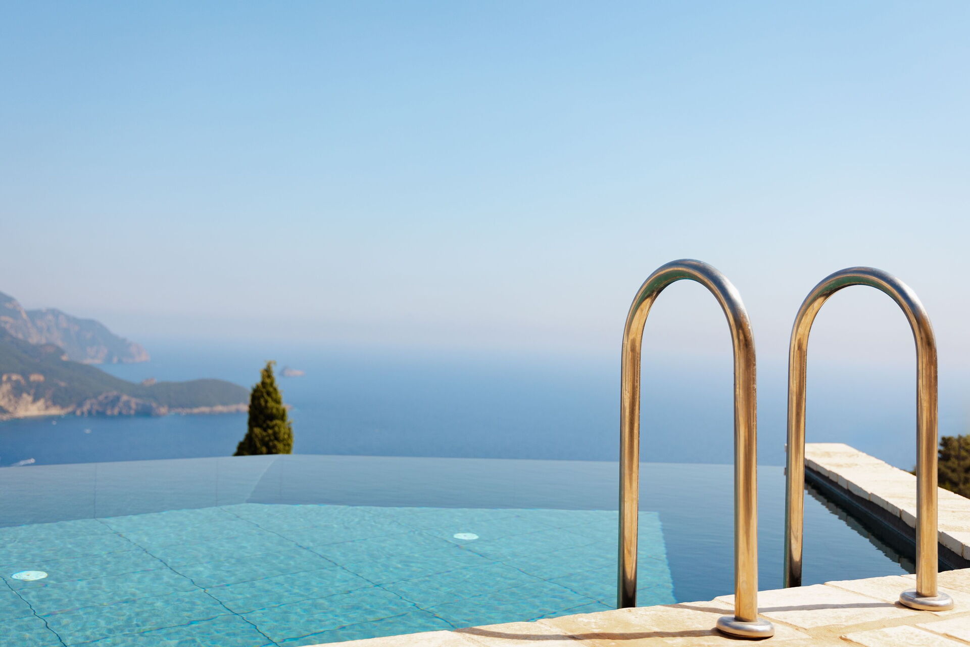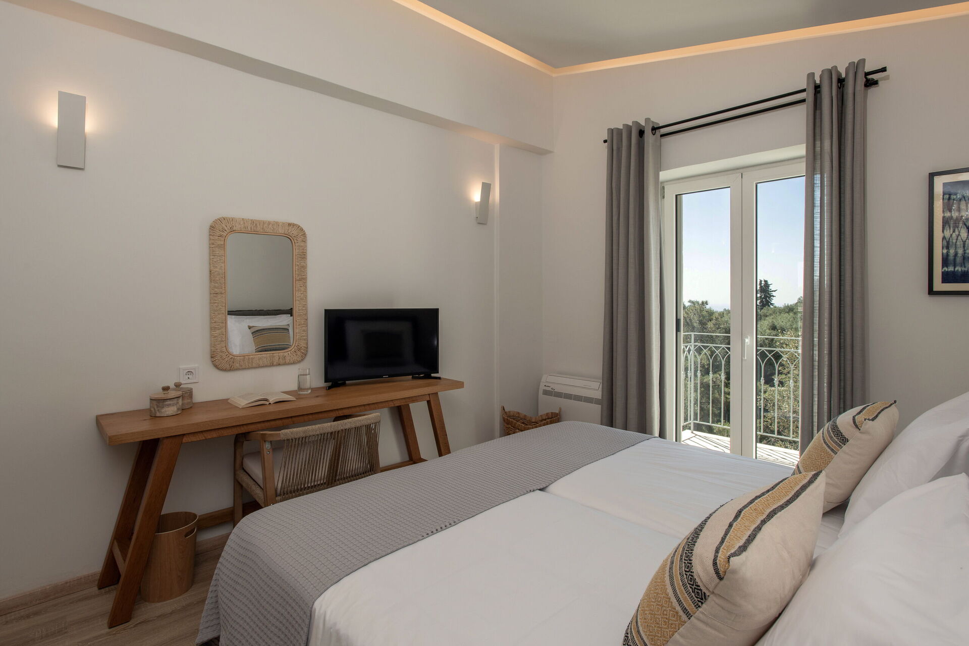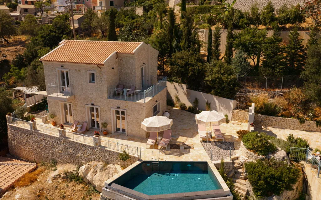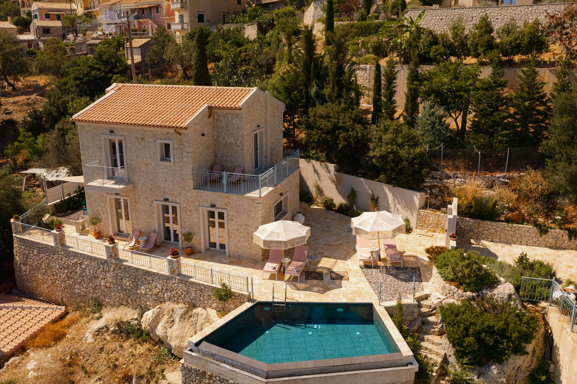 På det panoramiske uteområdet finner du et vakkert og privat svømmebasseng med bassengdekk, hvor du kan nyte de solfylte dagene på Korfu.