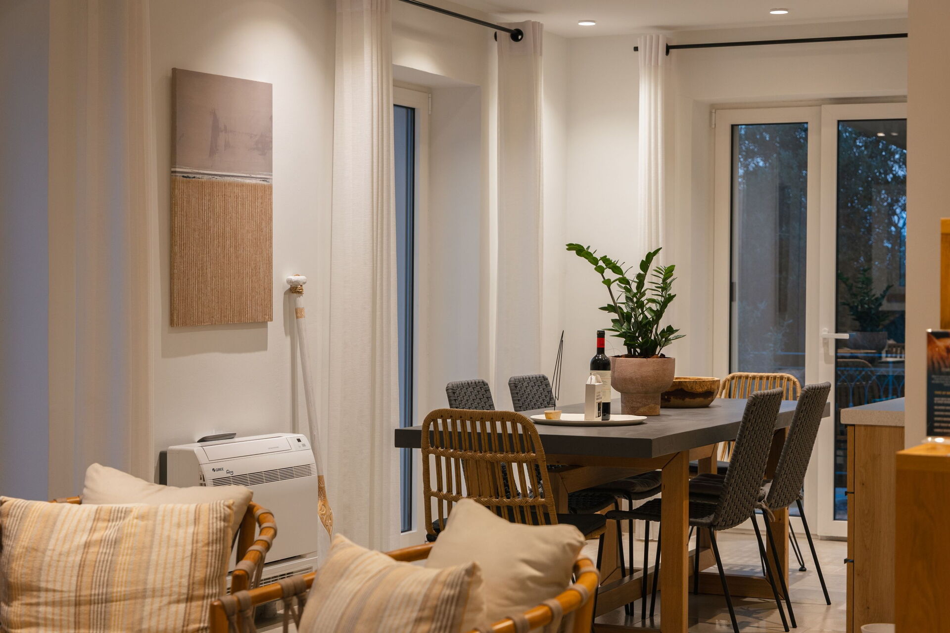 De store vinduene gir rikelig med naturlig lys og vakker utsikt, brisen kjøler ned selv de varmeste sommerkveldene, og Villa Thea Mare Maistro har alt som skal til for at du skal få en herlig ferie ved havet på Korfu!