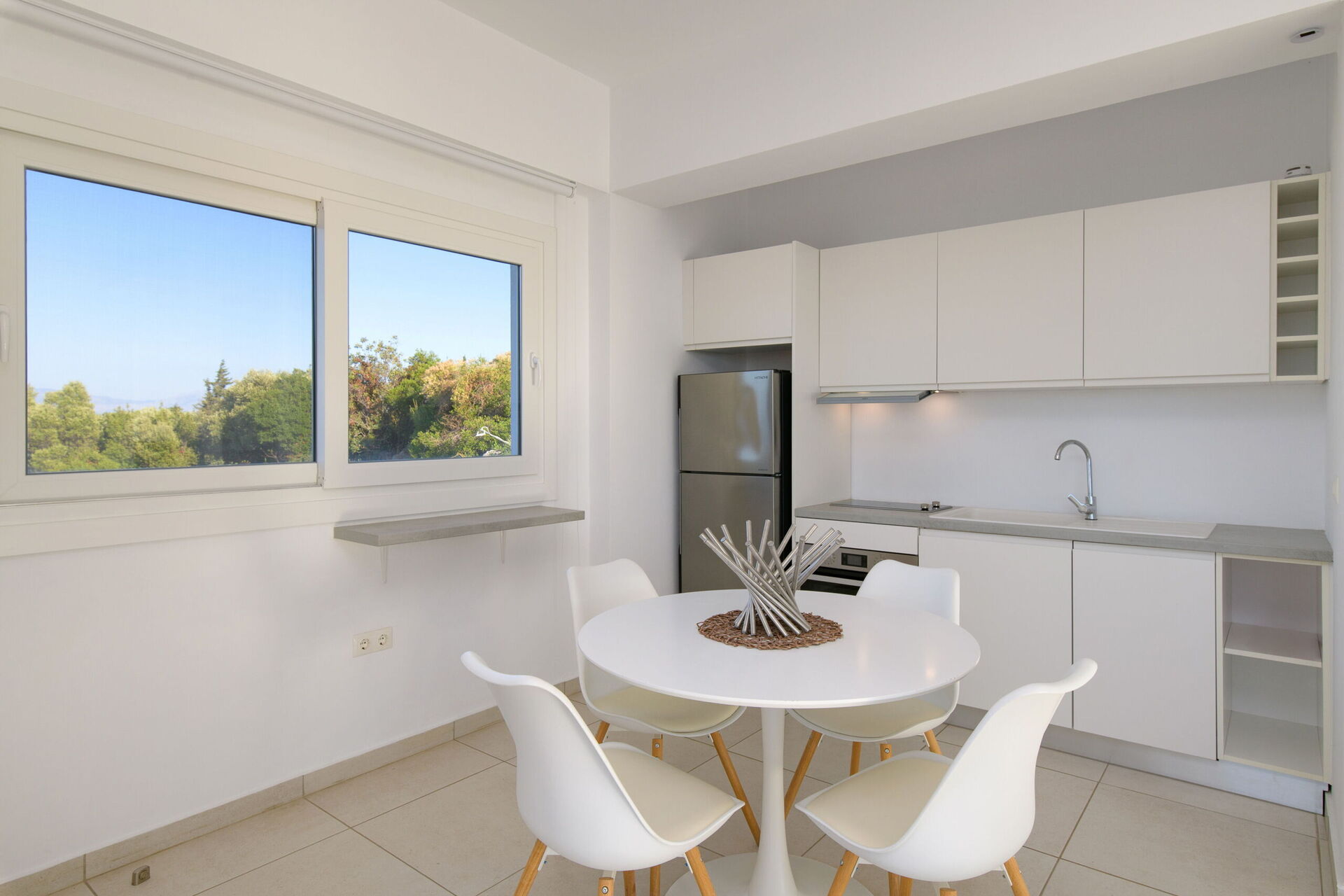 Villa Athena har en unik beliggenhet i Perithia-området, og er en del av den eksklusive eiendommen "Perithia View". Feriehuset er ferdigstilt til den høyeste standard for å kunne tilby gjestene en fantastisk ferieopplevelse. Med 4 soverom, 4 bad, store stuer og uteplasser, samt privat basseng, tilfredstiller dette huset de fleste behov man måtte ha. Den høye beliggenheten (men likevel veldig nær fantastiske strender) med 180 graders panoramautsikt, gjør at man kan beundre både soloppgangen og solnedgangen fra en og samme eiendom.
