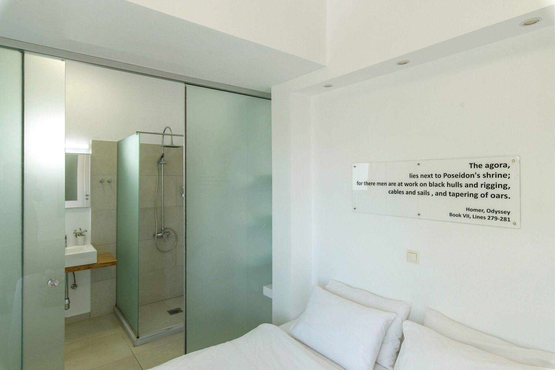 Huset er fordelt over 2 etasjer som er forbundet med en sidetrapp. Villa Athena har store terrassedører, store vinduer og designermøbler, og har derfor lyse rom. I første etasje er det en romslig stue (sofaer, wi-fi, klimaanlegg) med tilstøtende kjøkken (fullt utstyrt) samt 2 soverom (begge med eget bad). Ett soverom har en dobbeltseng + en sofa (som kan gjøres om til en enkel sovesofa i full størrelse), mens det andre soverommet har to enkeltsenger. Overetasjen er identisk med den nedre, bortsett fra at hovedsoverommet bare har en dobbeltseng og ikke en ekstra sovesofa. Det er en stor terrasse i begge etasjer gir vakker utsikt mot Det Joniske Hav og Den Albanske Kysten nedenfor.