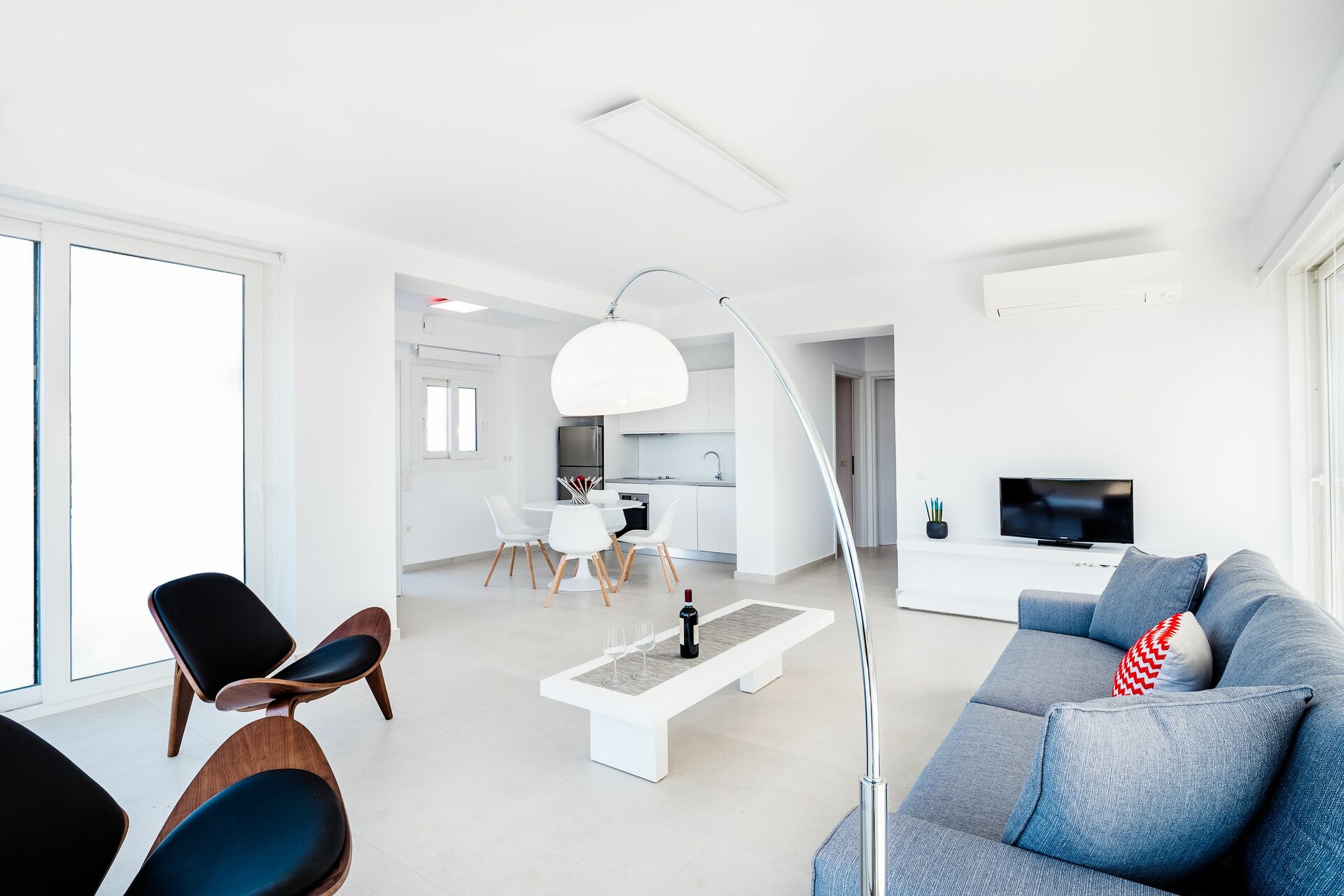 We stayed in Arete Villa which was in the middle apartment of the 3. The views are absolutely stunning, pool was clean and external areas were 5*s. Overall the apartment was exceptionally clean, with perfect ‘chill’ areas to relax in. Kitchen was fully equipped and the beds were super comfy. Super close to restaurants and beaches, closest town was a 7 minute drive which was really lively. Will definitely stay again!