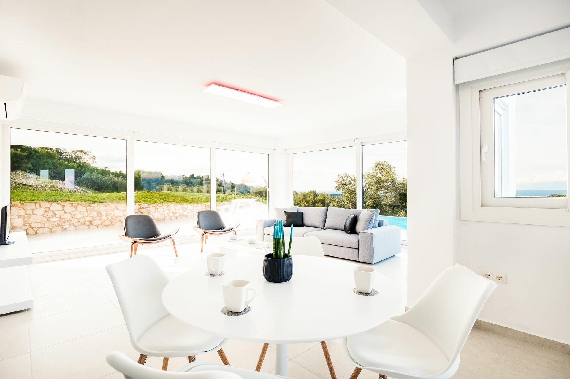 Villa Arete er en eiendom med en unik beliggenhet i Perithia-området på den nord-østlige delen av Korfu. Feriehuset er en del av den eksklusive eiendommen "Perithia View", og er ferdigstilt til høyeste standard for å kunne tilby gjestene en overlegen ferieopplevelse for de kresne. Med 4 soverom, 4 bad, store stuer og uteplasser, samt privat basseng, inneholder dette huset alt du kan ønske deg under et ferieopphold. Den høye beliggenheten (men likevel veldig nær fantastiske strender) med 180 graders panoramautsikt, gir en fantastisk naturopplevelse med sjanse for å kunne nyte både soloppgang og solnedgang fra en og samme eiendom.