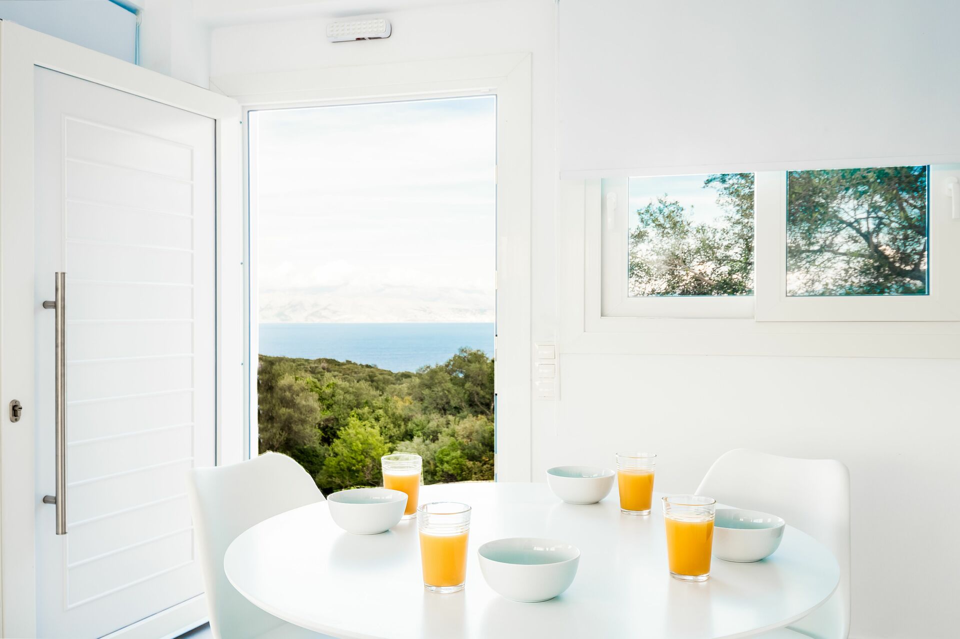 Excellent new villa ticking almost all the boxes for a family. 5 min drive from an excellent beach for kids shallow, warm and sandy (Agios Spiridon). 7 minutes walk from little village with tavernas that do takeaway with all the Greek favourites. Excellent pool (multicolours at night) with amazing view of Albania and incredible sunsets. 5 min walk from icecream place. Actually 2 apartments one on top of the other with private entrance and kitchen and lounge. Perfect for the inlaws or older kids or friends. Amazing place.