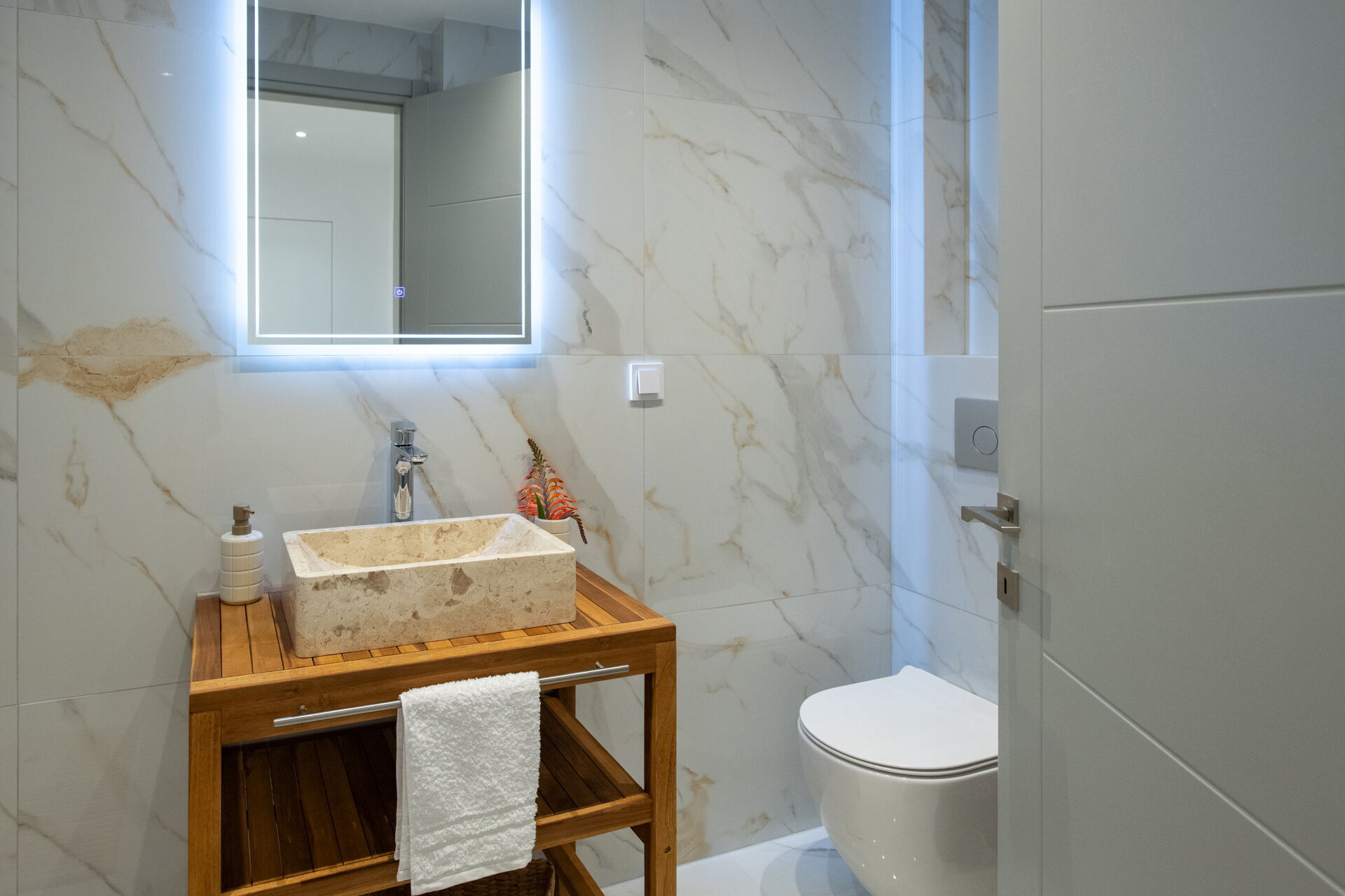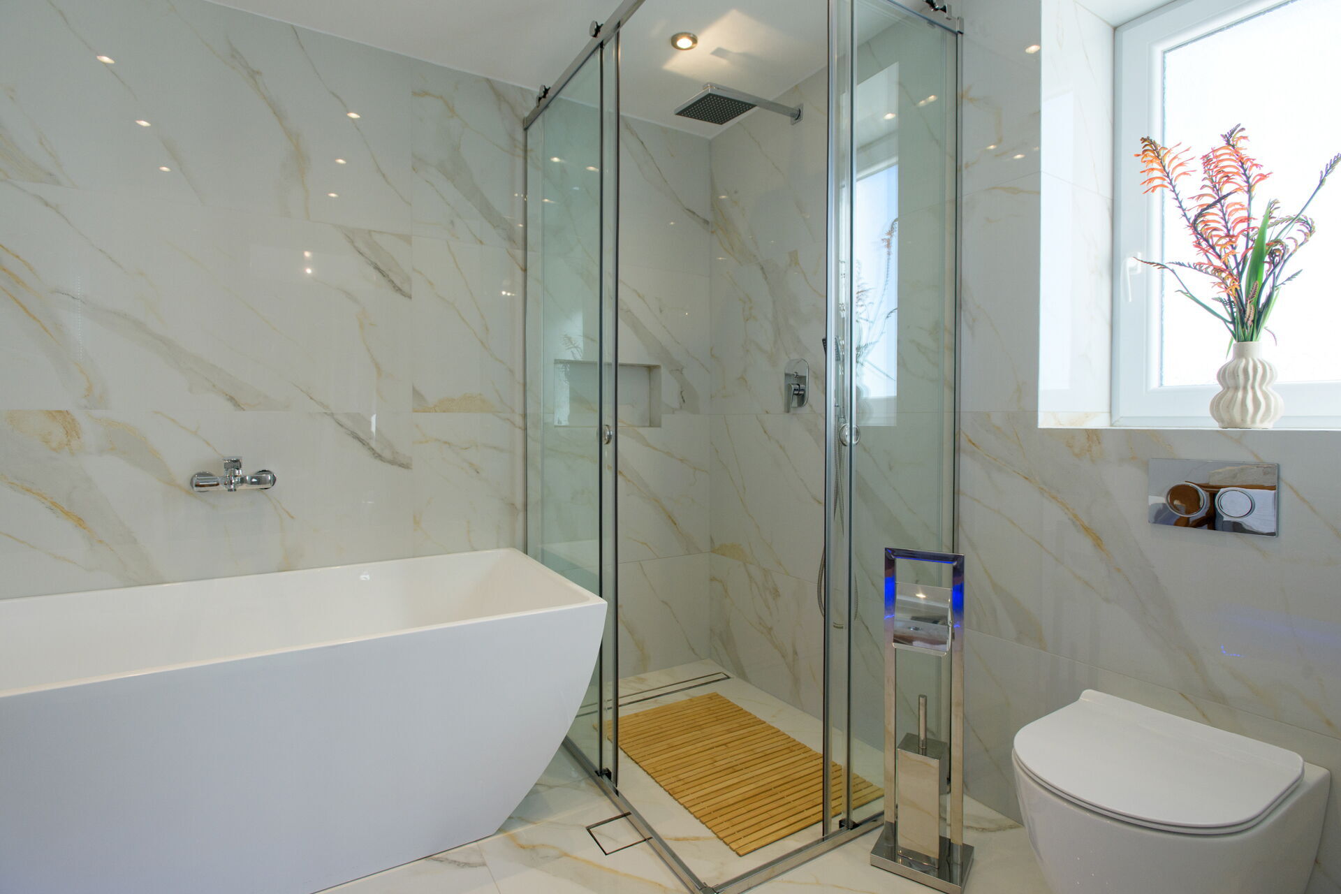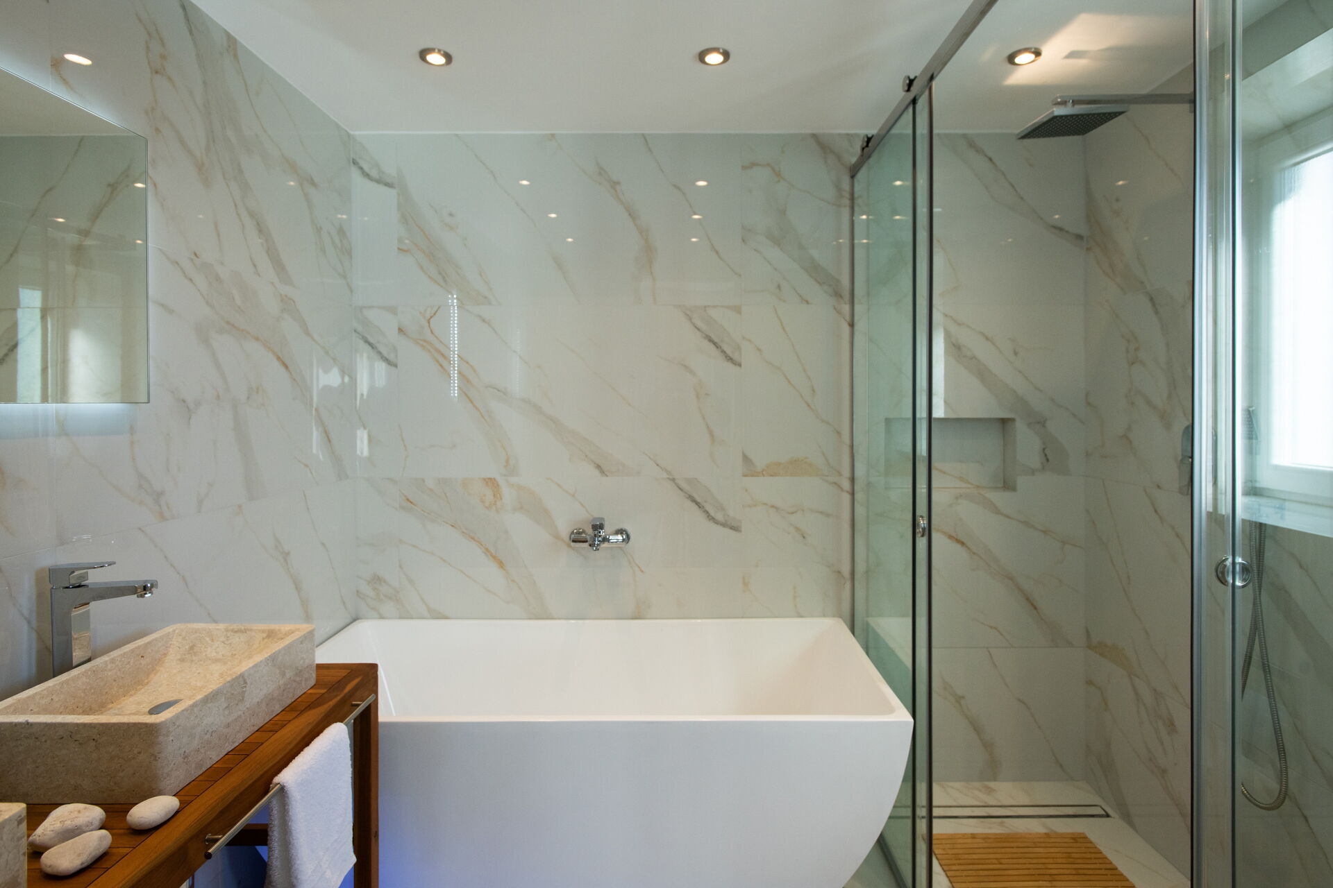Villaen er over 3 etasjer og med 3 soverom og store fellesarealer, inkludert et velværeområde med innendørs boblebad (plassert i villaens underetasje).