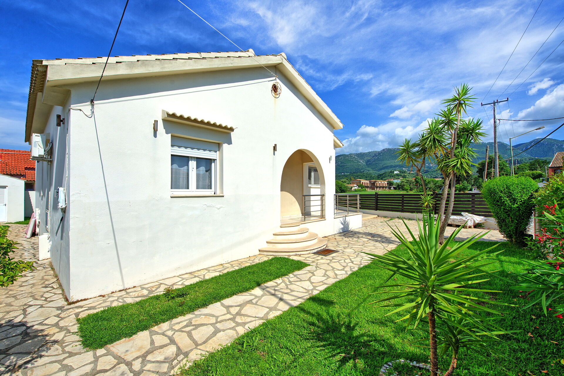 Avstander: strand og Taverna Afros 190 meter unna; Acharavi (butikker av alle slag) 350 meter; Kassiopi 13 km; Korfu by 40 km; flyplass 40 km unna.
