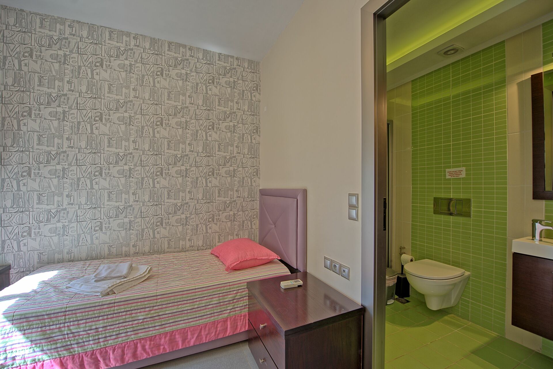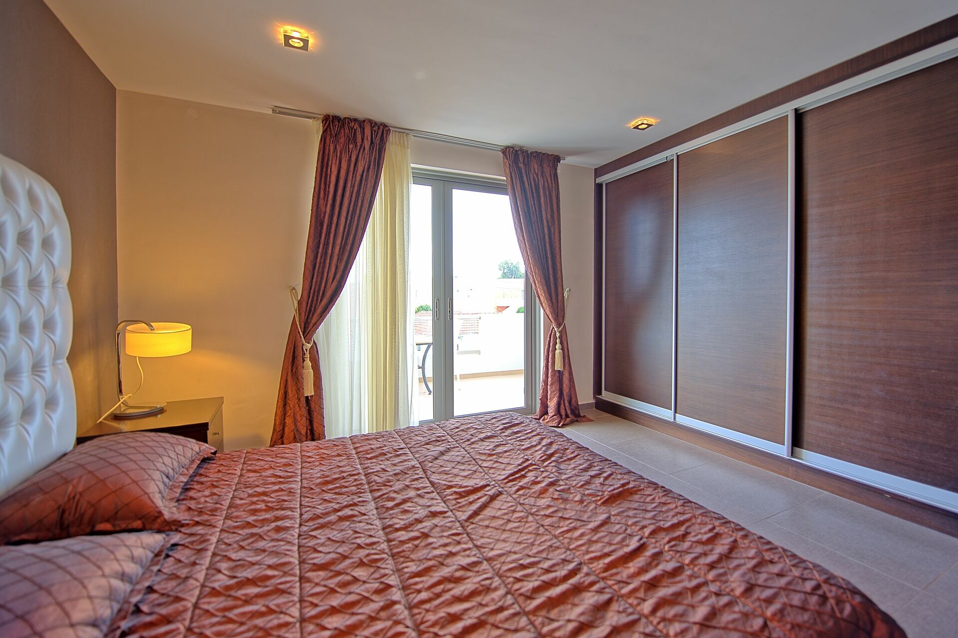 Tredje etasje: hovedsoverom med eget bad med boblebad og terrasse; dobbelt soverom med eget bad med dusj; enkelt soverom (ekstra seng for én person kan legges til gratis på forespørsel) med eget bad med dusj.