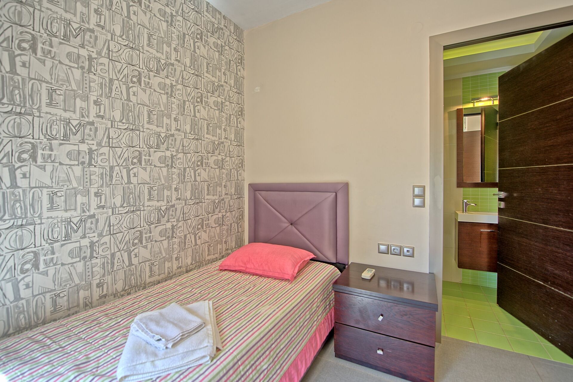 The Posarelli Villas are lovely brand new 4 storey town houses a few minutes walk from the beach and centre of agia marina. They are very spacious with 4 bedrooms, 3 en-suite and 1 with own bathroom opposite, 2 living areas with big sofas and tv. Very nice outdoor roof top pool and space which was great for sunset drinks. Location was perfect, short walk to the beach and right in the middle of lots of restaurants, bars etc. Place was spotless and great value for money, would definitely stay there again. Communication with the hosts was okay and I can highly recommend