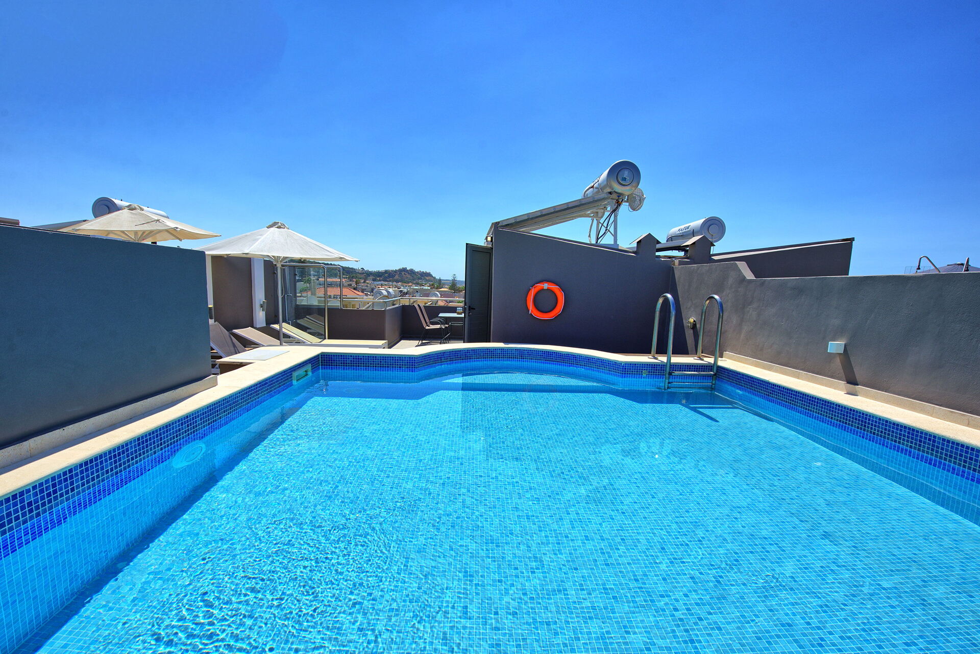 Fjerde etasje: terrasse med panoramautsikt og privat basseng (dybde: 0,55 meter), utendørs dusj, bord og stoler for uteservering.
