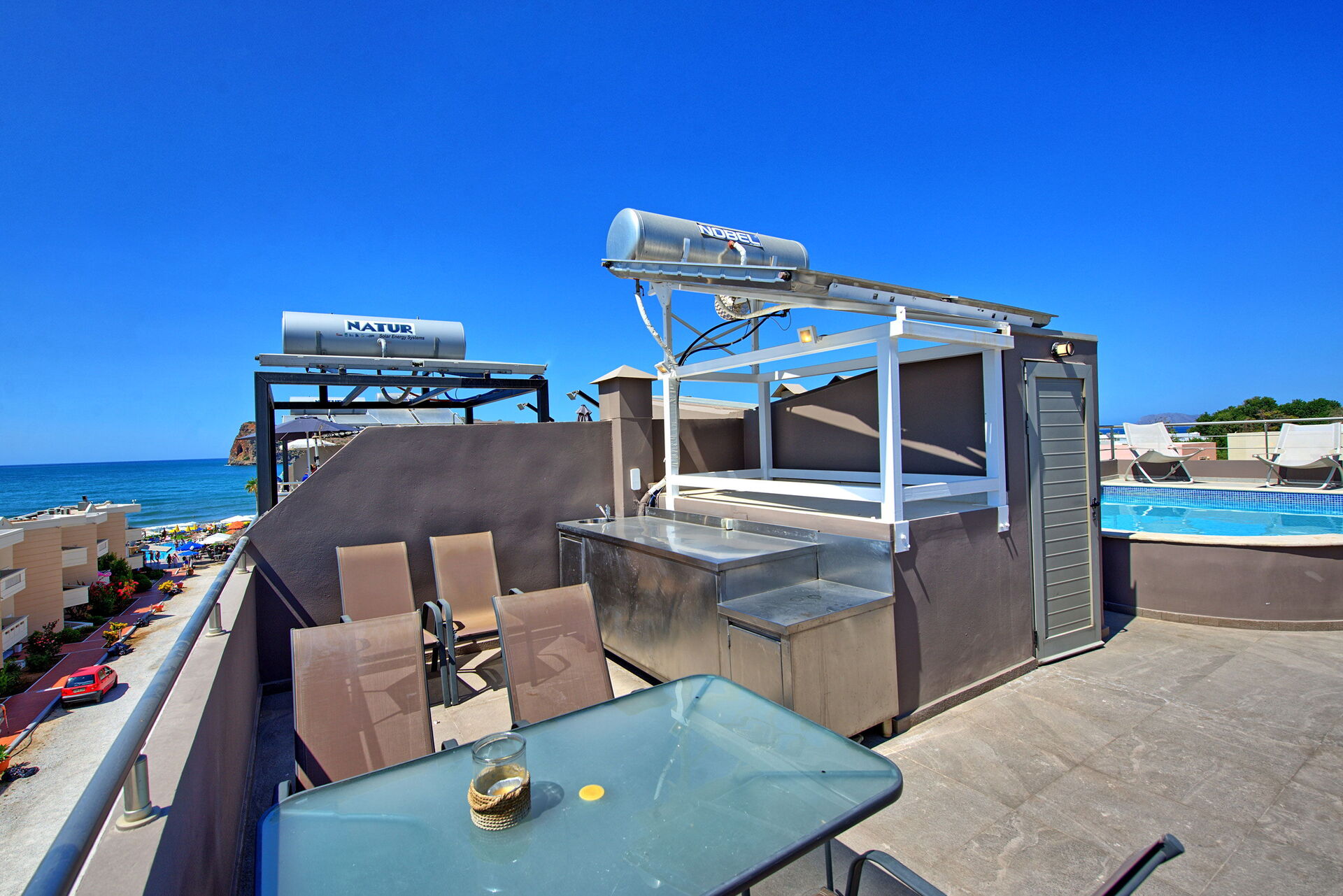 Sjøen og stranden ligger mindre enn 100 meter unna, og i byen Agia Marina er det butikker av alle slag. Sandy Villas er en flott base for å utforske øya Kreta og de vakre strendene i området.