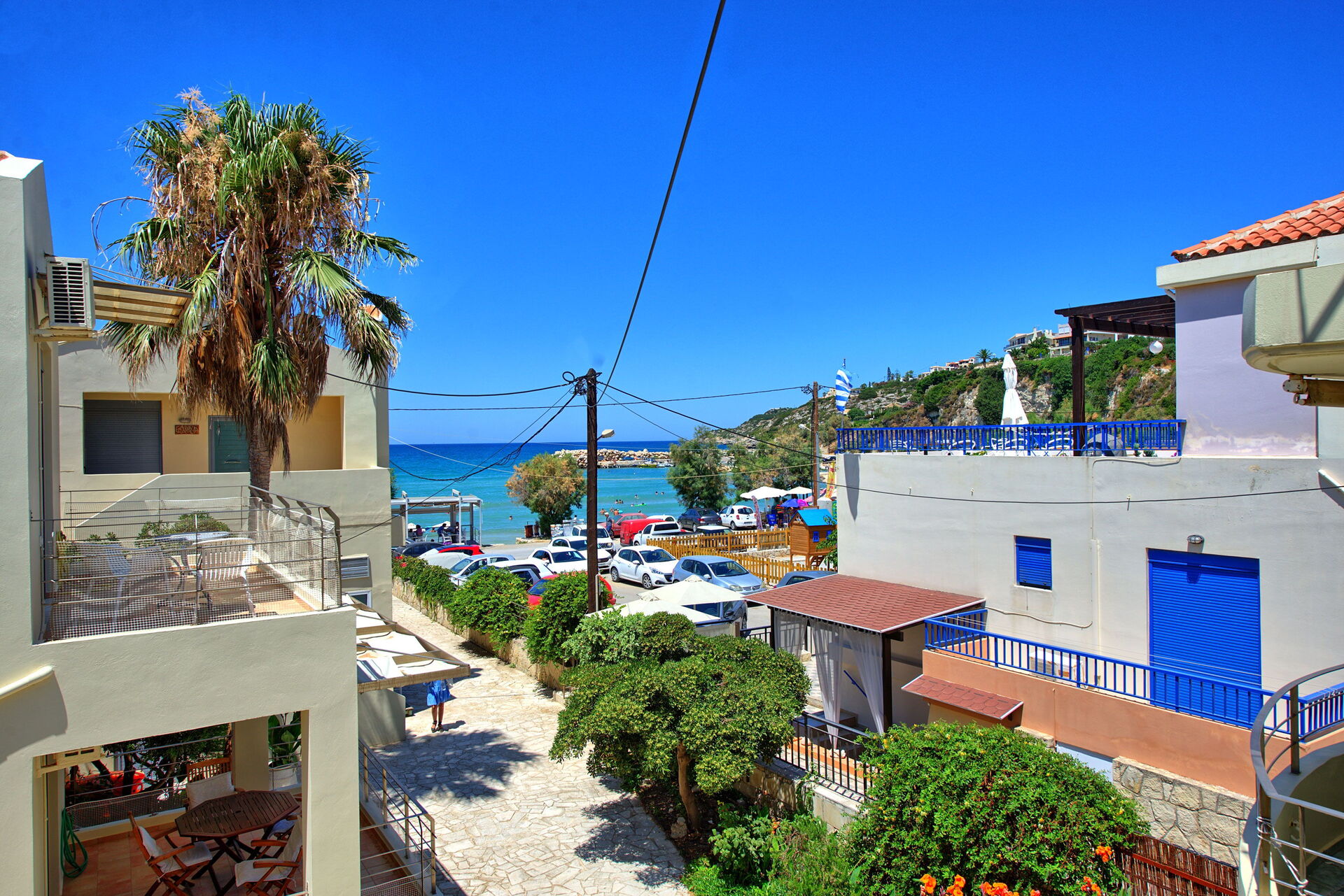 An ideal villa in the centre of Almyrida, steps from the beach. This was an ideal home for our family vacation. The basement room was great for my teenage sons whilst the upstairs bedrooms had bright views from their balconies.