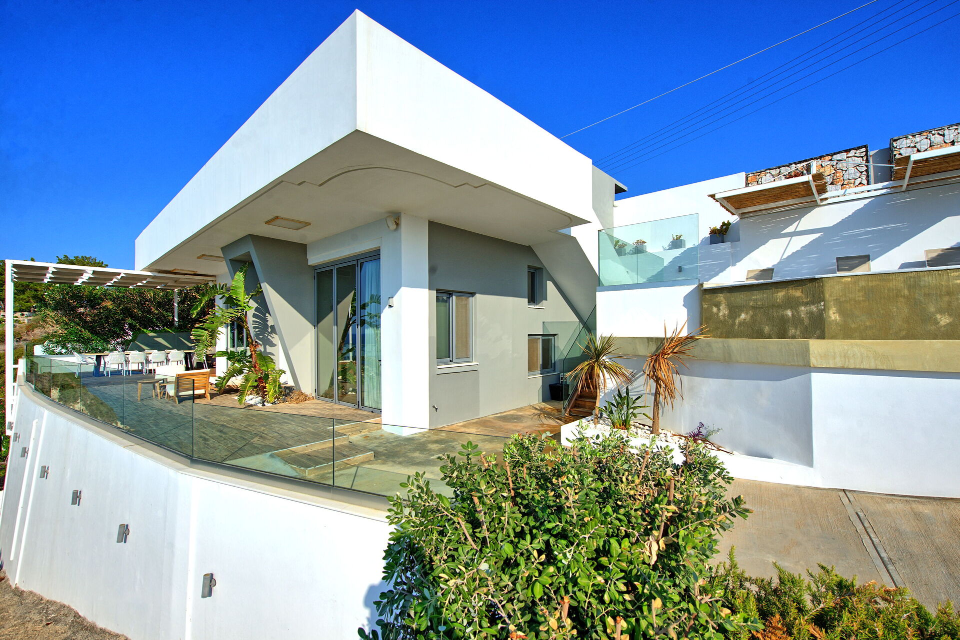 Feriehuset er bygget langs de naturlige terrassene og havklippene, smart arrangert for å tilby en parkeringsplass, et fantastisk evighetsbasseng hvor du kan sole deg og lese en god bok. det er også en møblert terrasse for å sole deg eller nyte middager under åpen himmel med fantastisk utsikt over havet og solnedgangen.