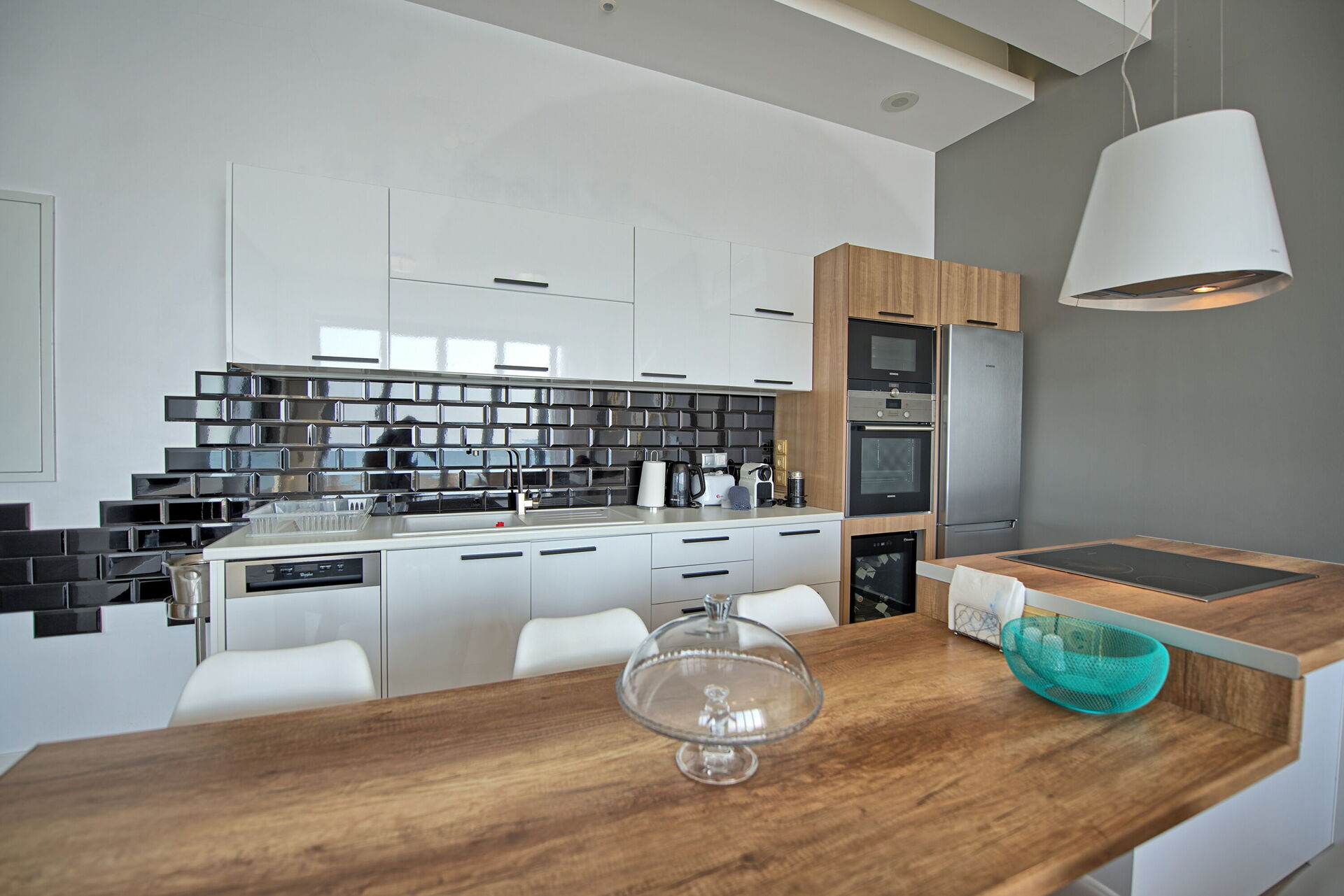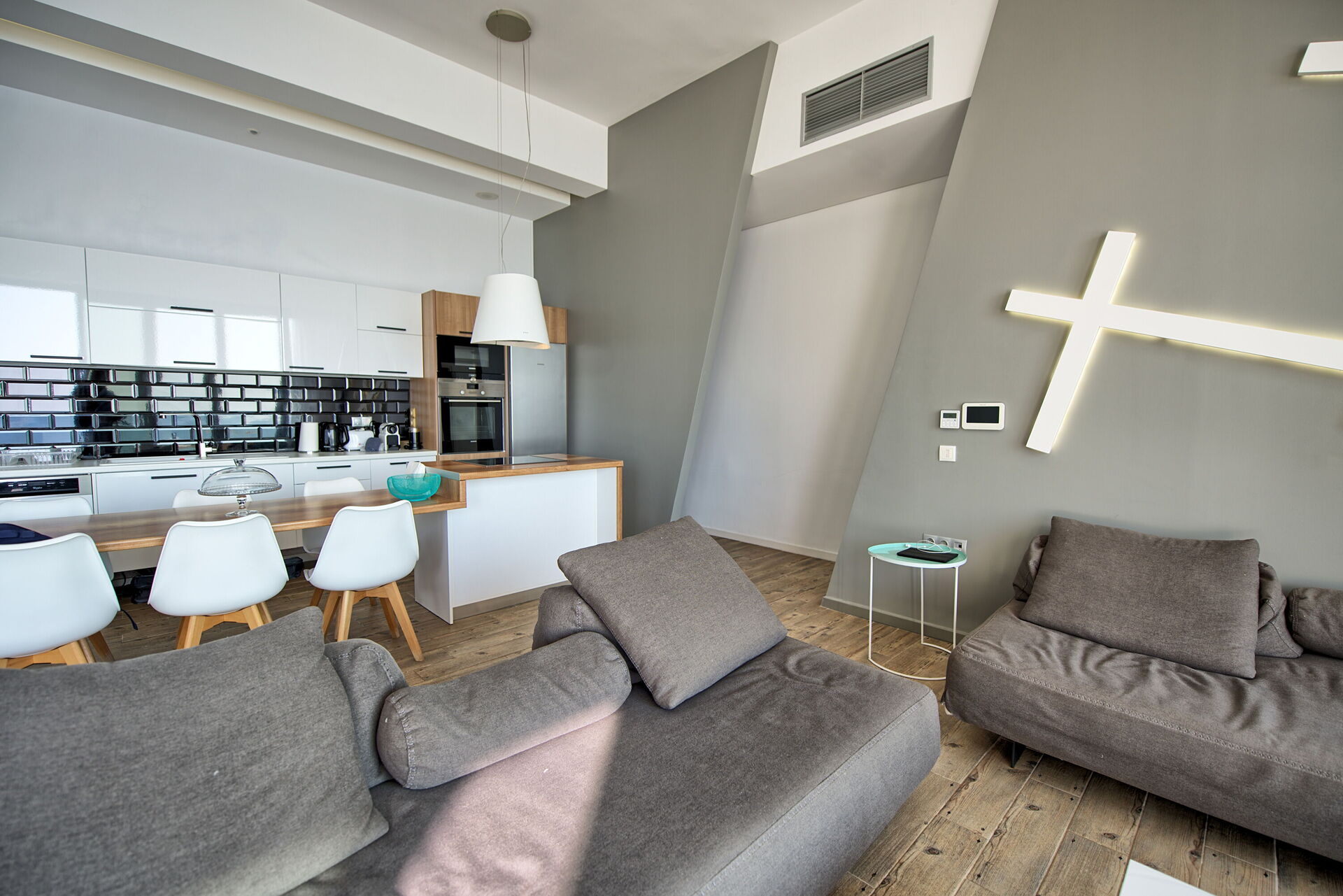 Huset har to etasjer, og det er nytt, moderne interiør med aircondition og alle bekvemmeligheter. Det har 3 soverom og 2 sovesofaer, og har plass til opptil 6/8 personer.