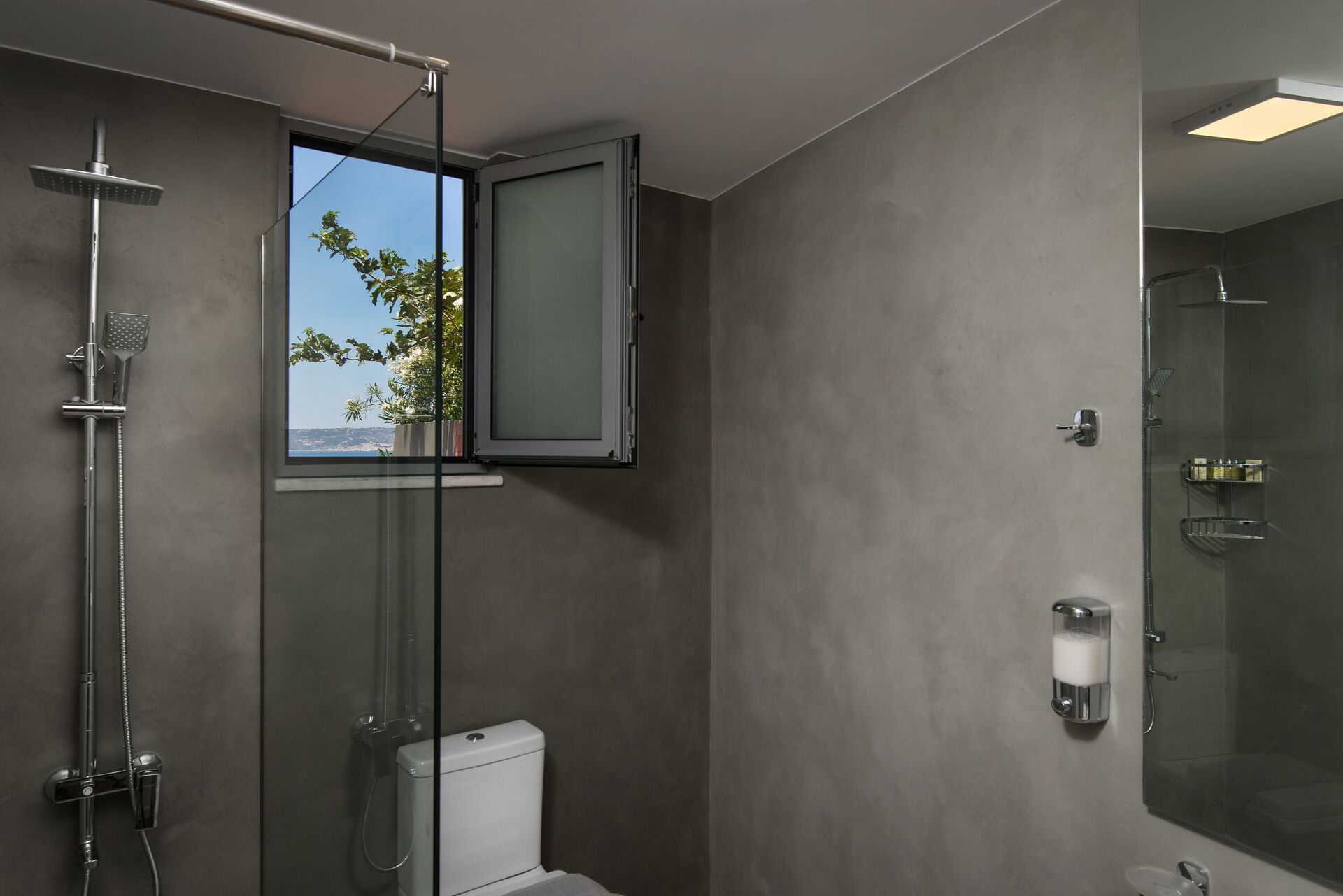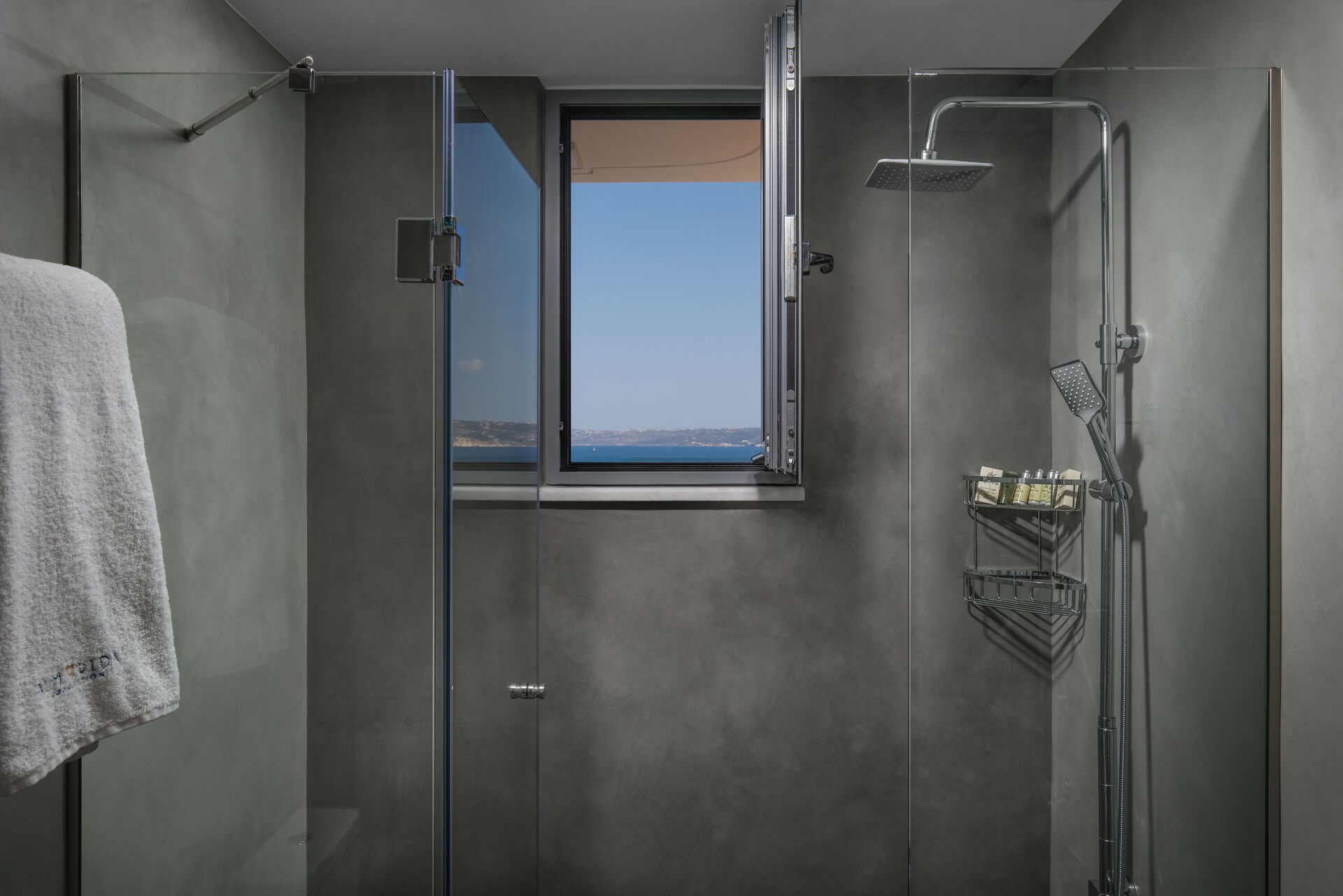 Villa Sapphire ligger på en høyde, med vakker, vidstrakt utsikt over havet og Souda-bukten.