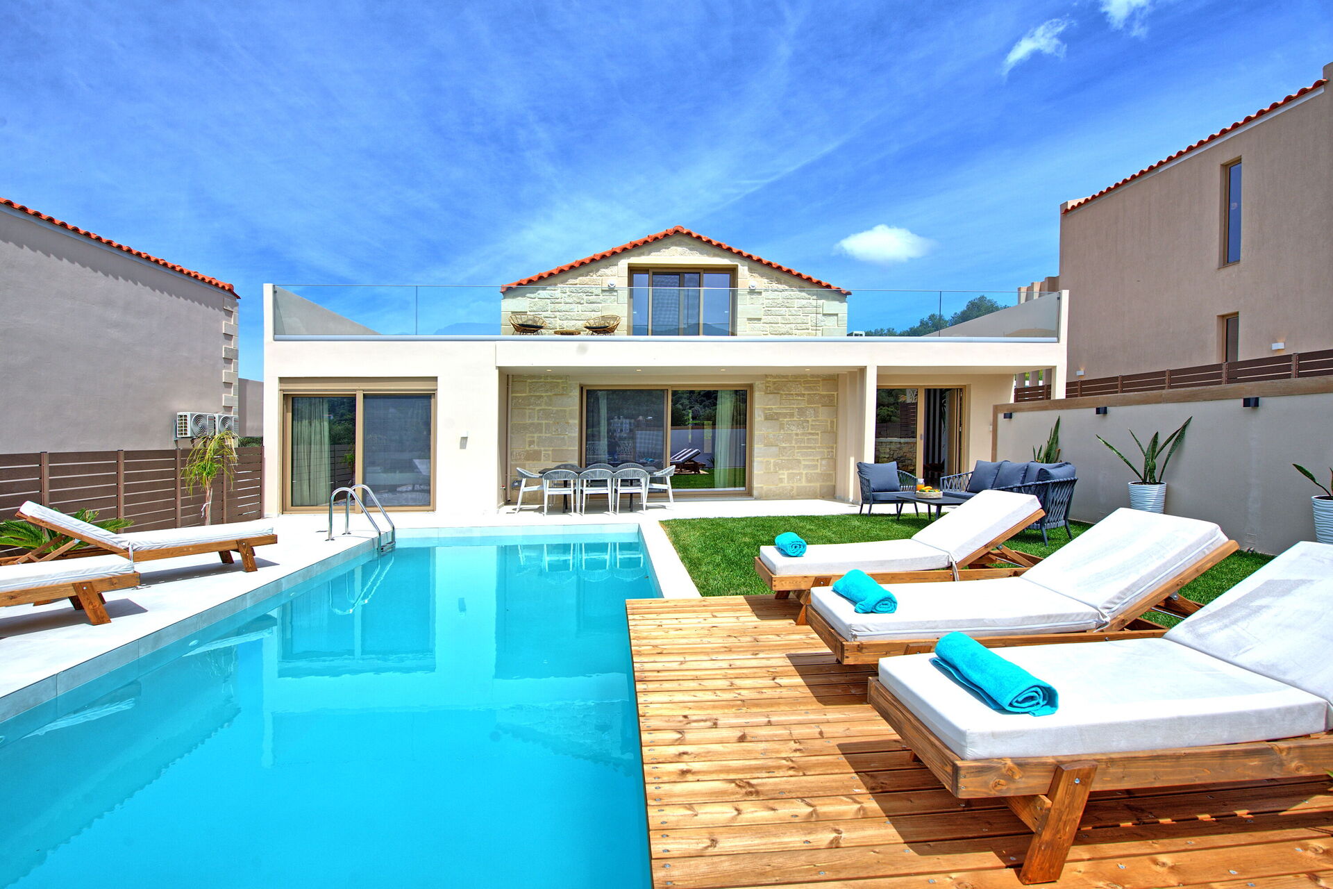 Feriehusene kan leies separat med egen inngang, hage og privat basseng og alle 3 ligger innen rekkevidde av Chania og Rethimno, byer med romantiske gamlebysentre og strandpromenader, butikker og lokale greske restauranter.