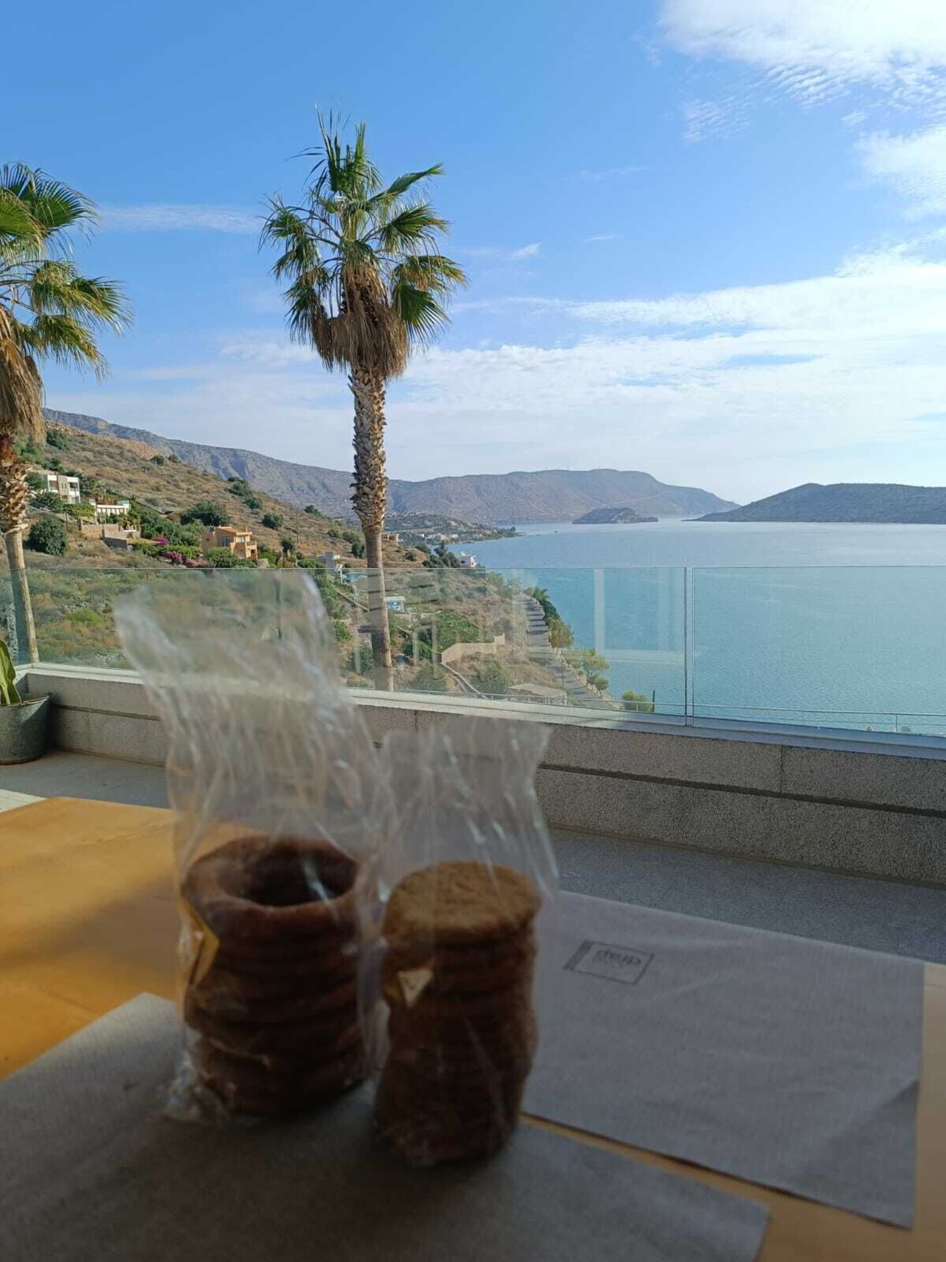 Utsikten fra husets beliggenhet på toppen av en ås nær Mavrikiano er fantastisk! Fra her ser du nydelig kupert landskap, sjøen og øya Spinalonga!