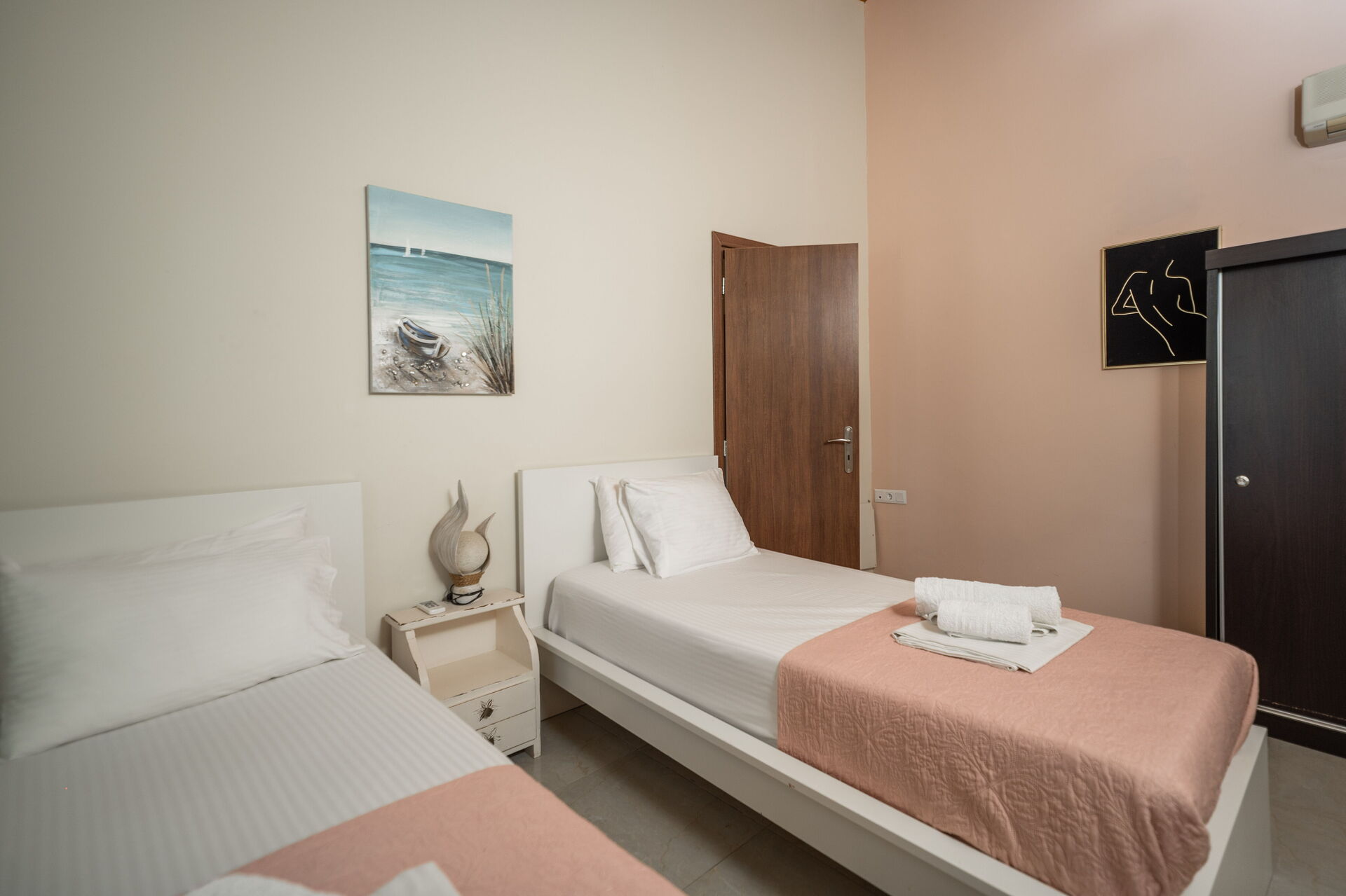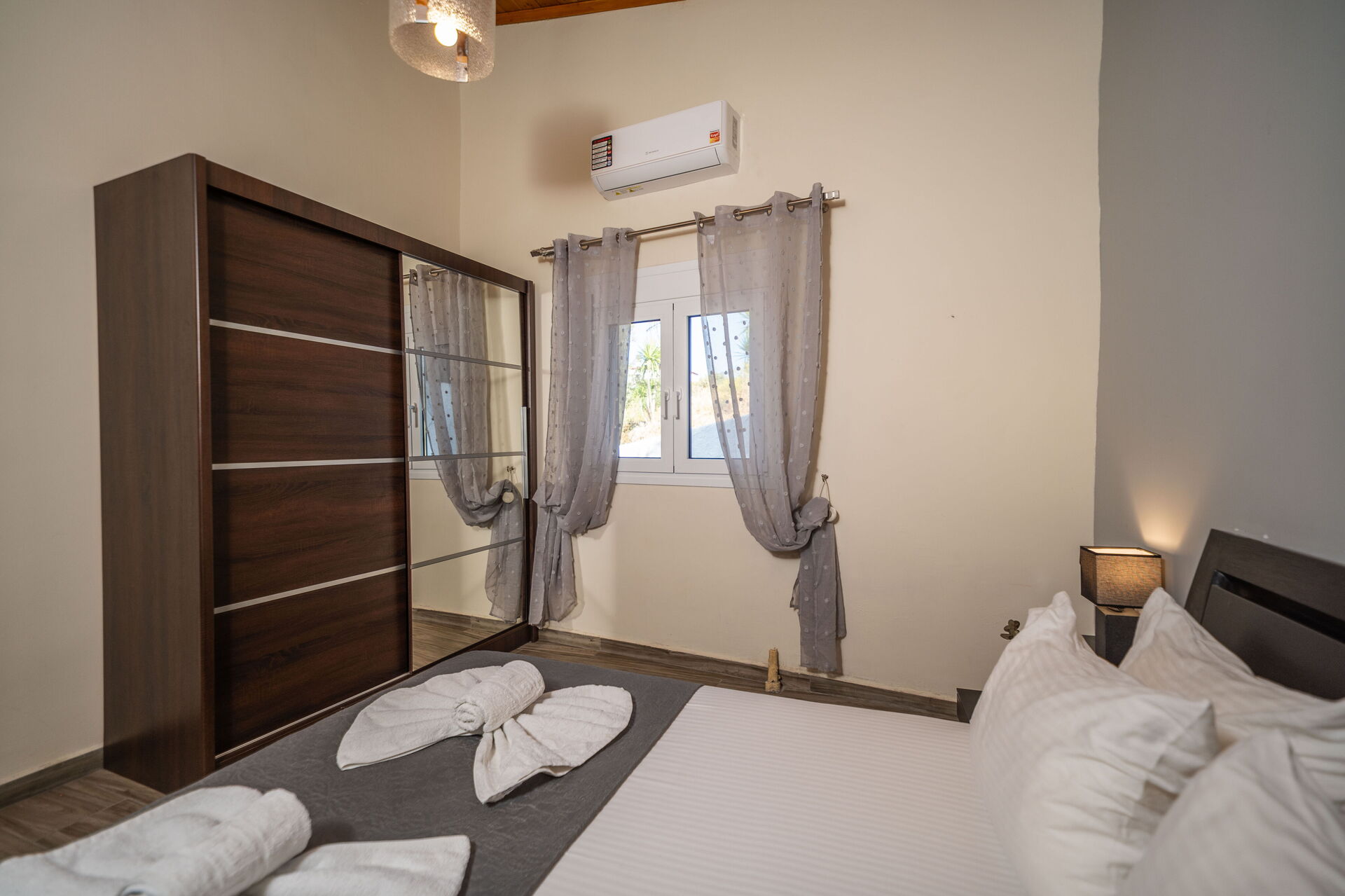 Feriehuset er over én etasje med aircondition og er smakfullt innredet i en enkel og moderne stil. Huset har er plass til opptil seks gjester, takket være tre koselige soverom. Det er også to bad, så her er det god plass til alle!