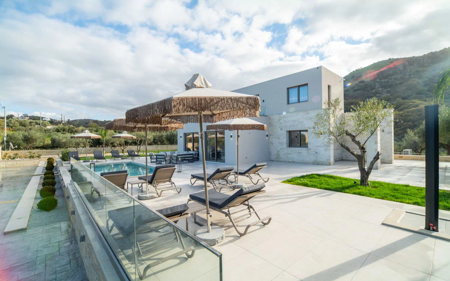 Huset ble ferdigstilt i januar 2026, så alt i Villa Vasilissa er helt nytt. På eiendommen finner du et naturskjønt basseng med panoramautsikt over havet og det omkringliggende kretiske landskapet, perfekt for en forfriskende svømmetur på varme sommerdager.