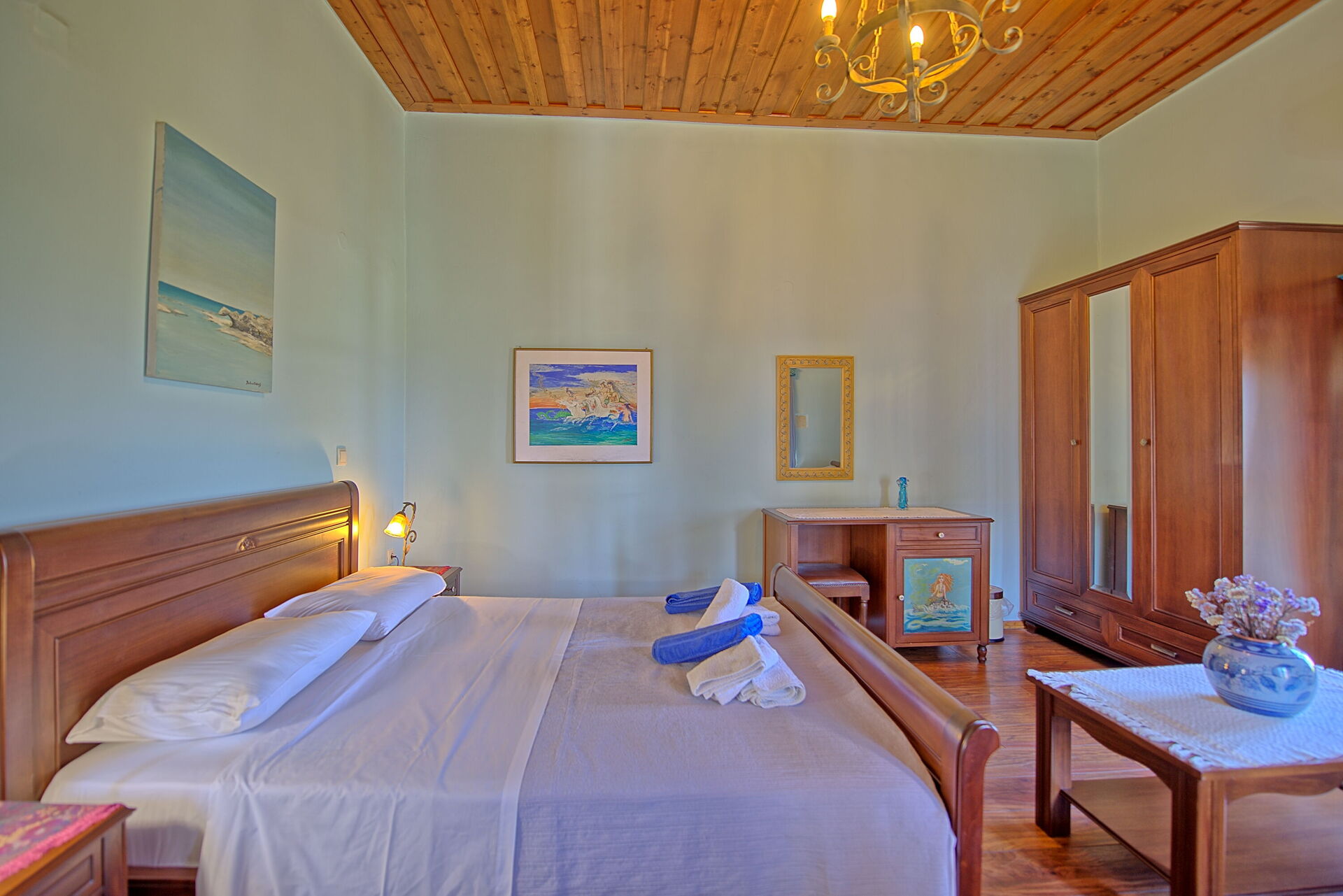 Den nærliggende byen Kastelli ligger 210 meter over havet og har fantastisk utsikt over havet og fjellene. De nærmeste strendene og innsjøen Kournas ligger ca. 5 km unna.