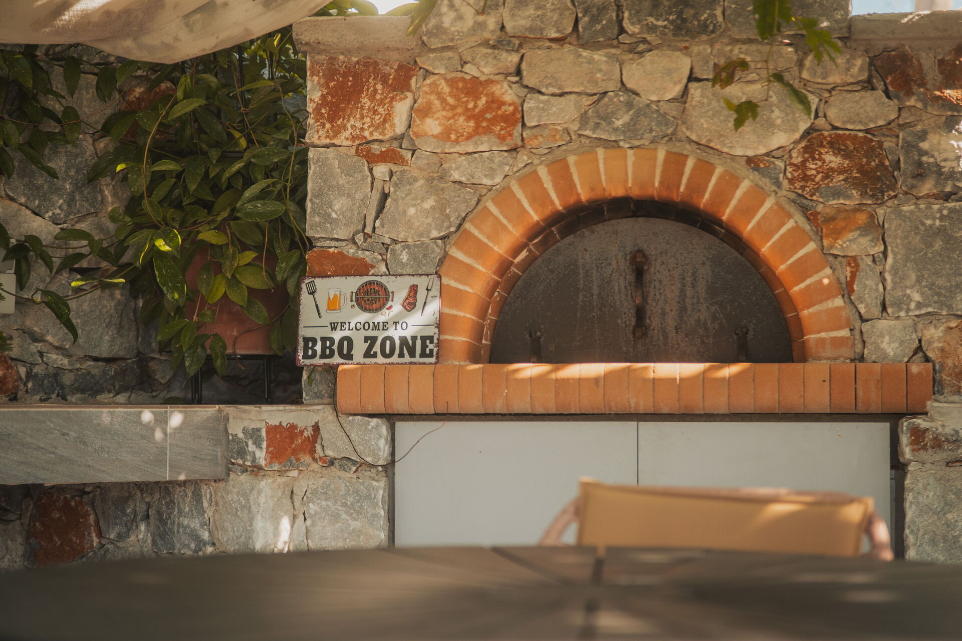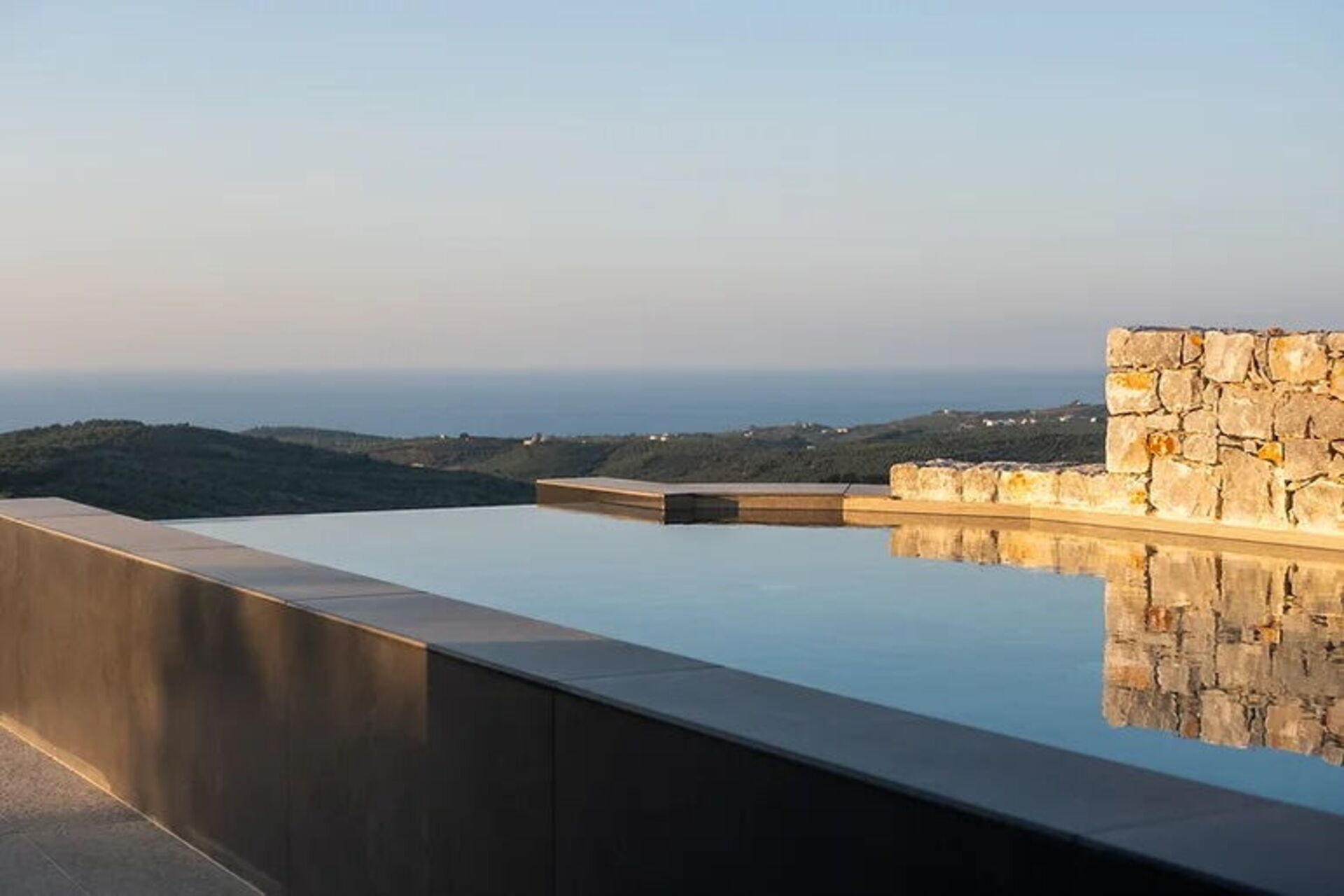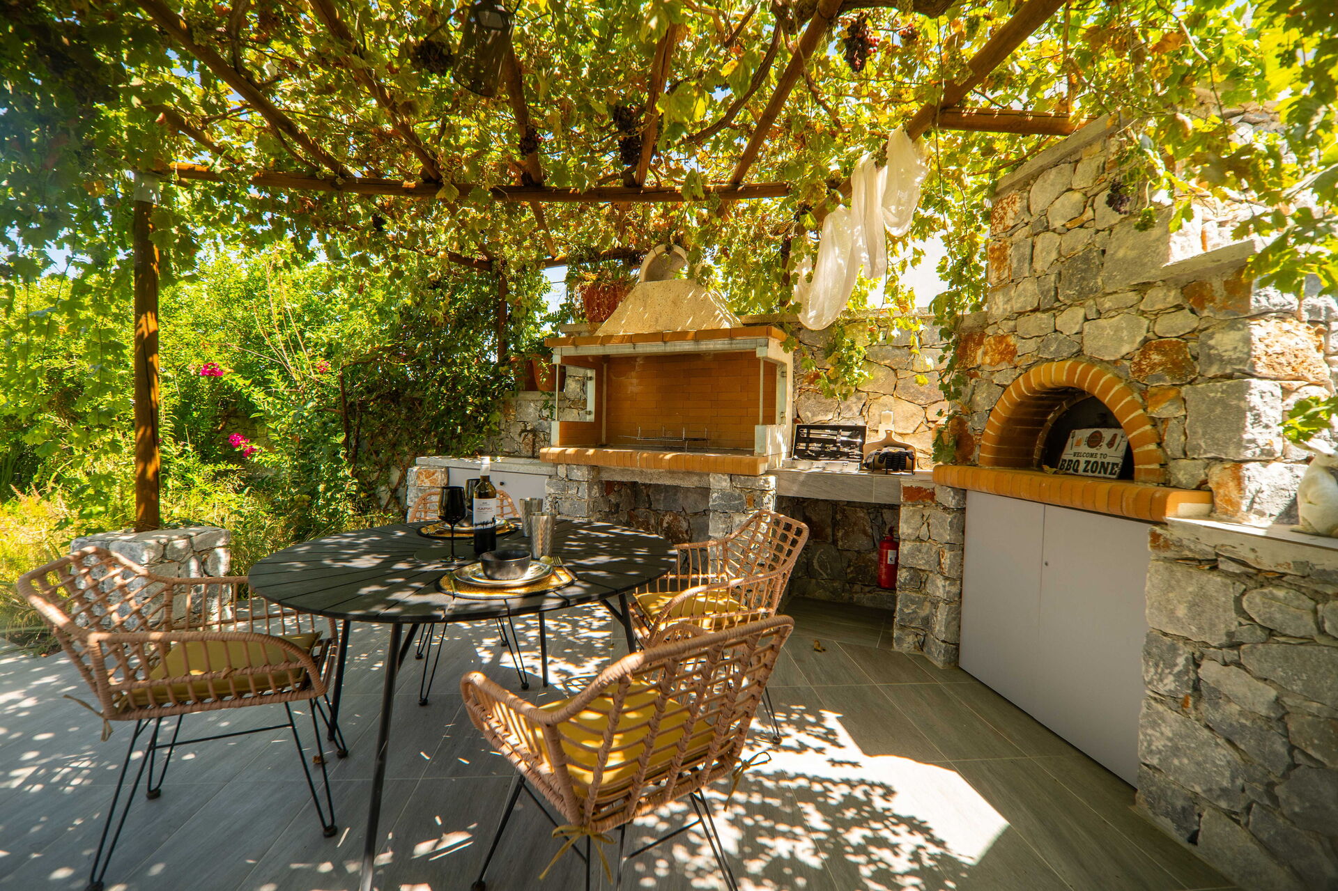 Feriehuset har en hage og en uteservering med bord og grill. På solfylte sommerdager kan du kjøle deg ned i det private bassenget med boblebad (kan varmes opp på forespørsel), nyte fantastiske solnedganger og den fantastiske utsikten over det omkringliggende landskapet som strekker seg helt til havet.