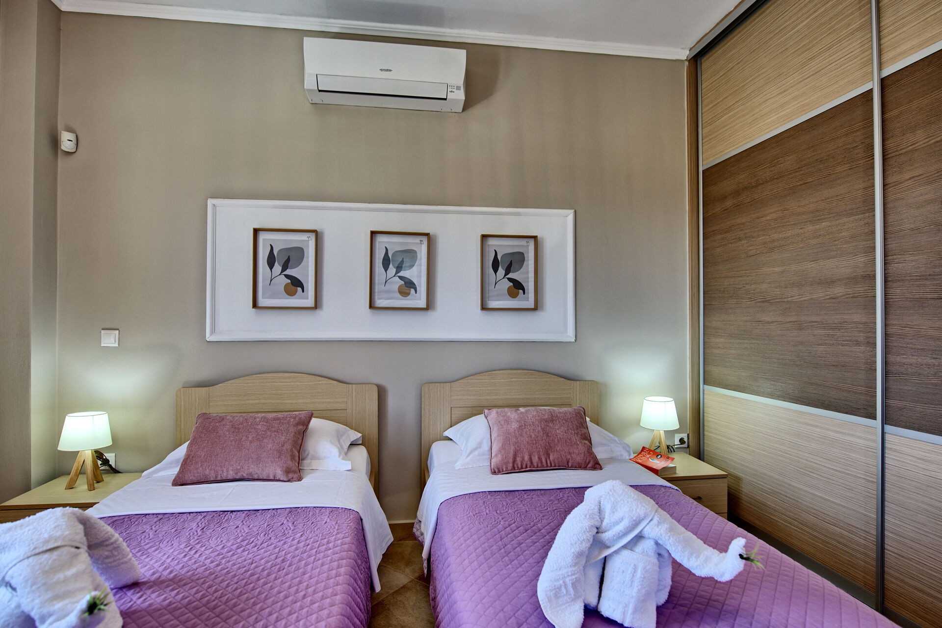 1 dobbeltrom, 1 twinrom (kan settes sammen på forespørsel), terrasse tilgjengelig fra begge soverom, bad med dusj