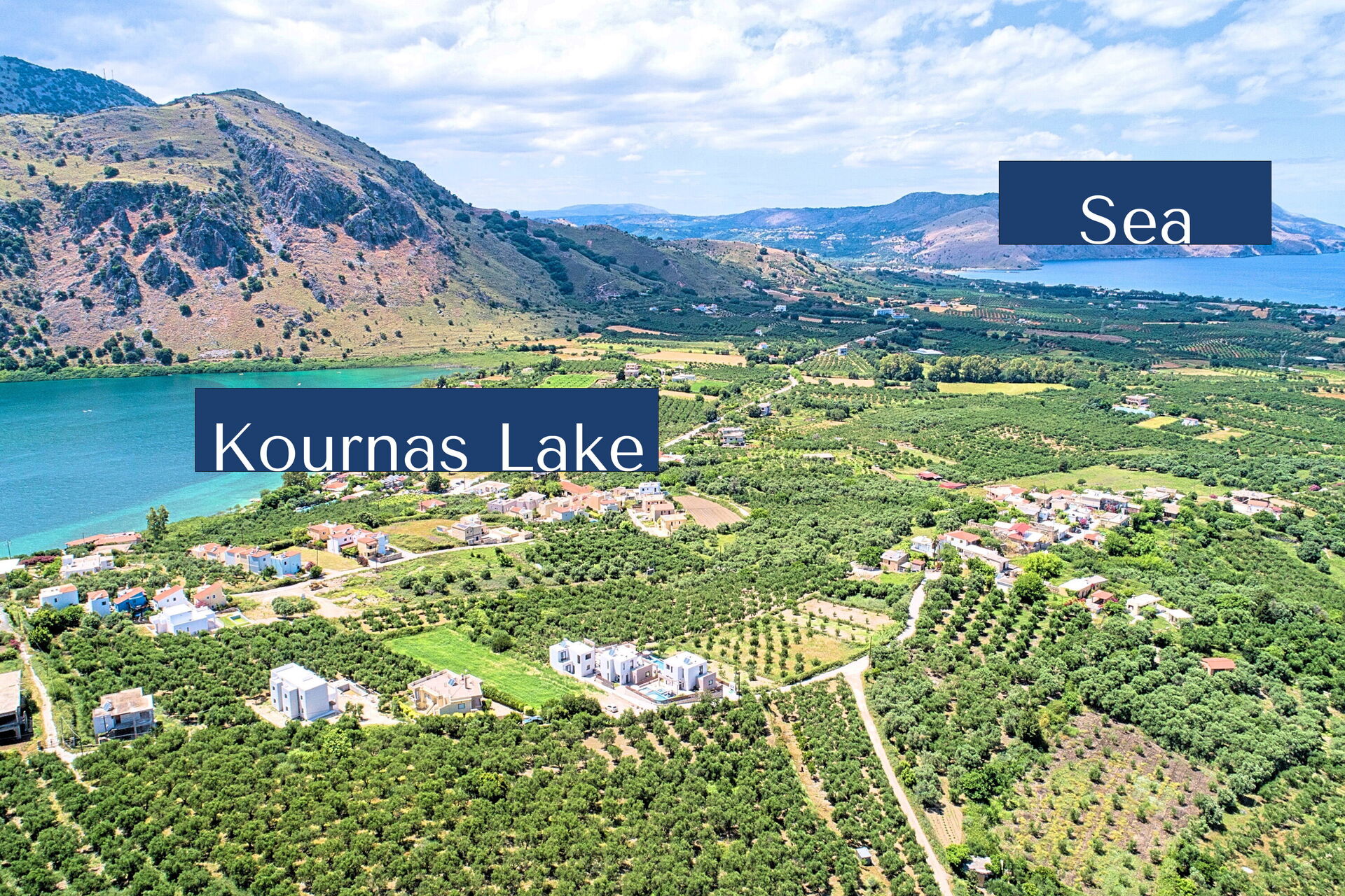 Avstander: Kournas-sjøen (butikker og restauranter) 1 km unna, Georgioupolis (butikker av alle slag, strender) 4 km, Rethymno 23 km, Almyrida 30 km, Chania 40 km, flyplass 50 km, Heraklion 100 km, det berømte Knossos-palasset 105 km.