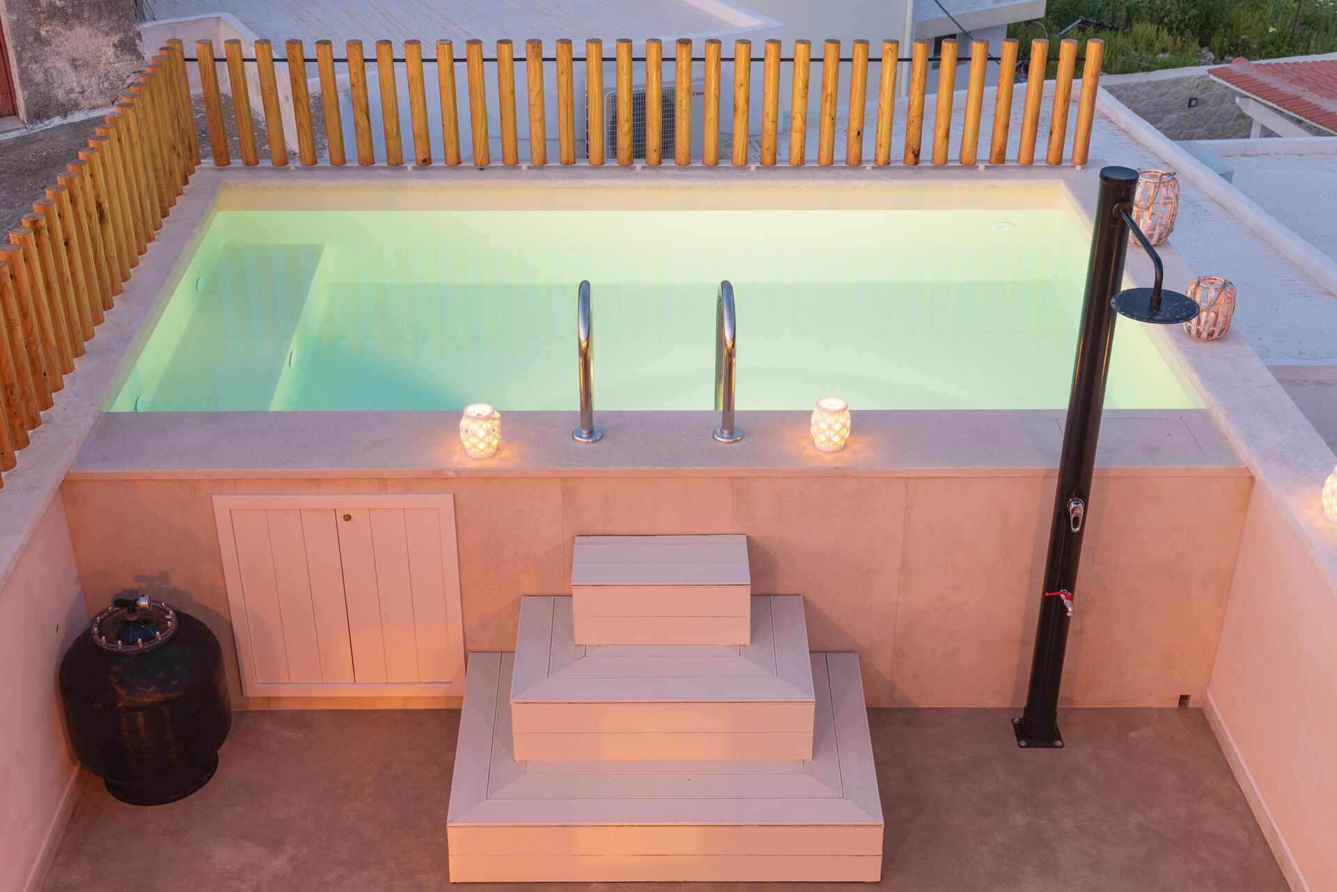 Great villa, outstanding service from the Owners. Great heated (!) Pool. 10 Minutes to the Beach by car.