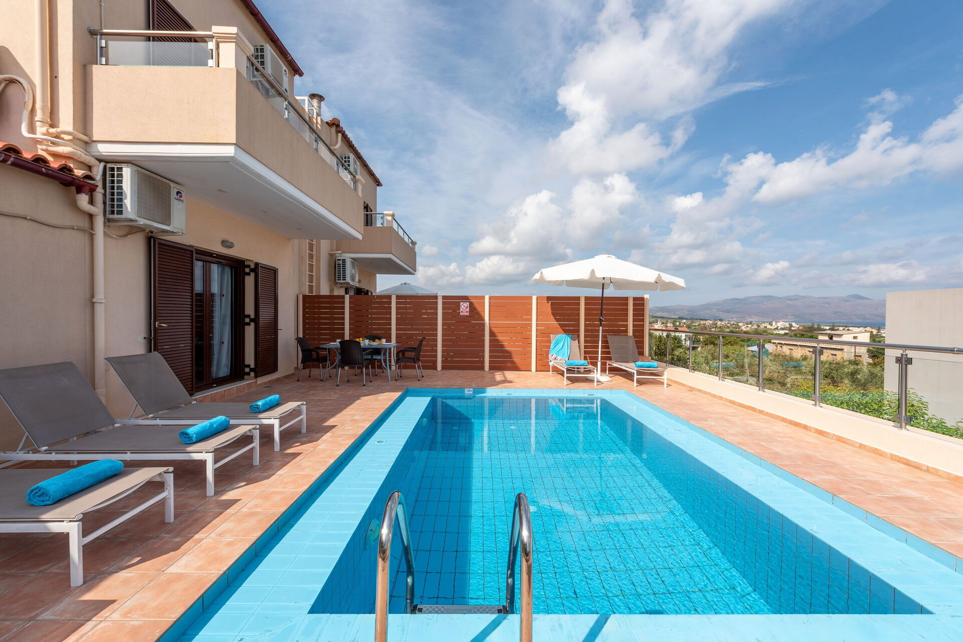 Ottimo appartamento, moderno, spazioso e dotato di ogni icomfort. Pulizia eccellente. Ideale anche per due famiglie. Buona la posizione + o meno un ora di auto dalle spiagge + belle. La città di Chania è a circa una ventina di minuti. Ristoranti e bar nelle vicinaze. Indispensabile in ogni caso avere un auto per muoversi. Bella la piscina ad uso esclusivo pulita e con una vista Top!!! Proprietario super disponibile ed efficiente. Consigliato per trascorrere una piacevole vacanza a Creta.