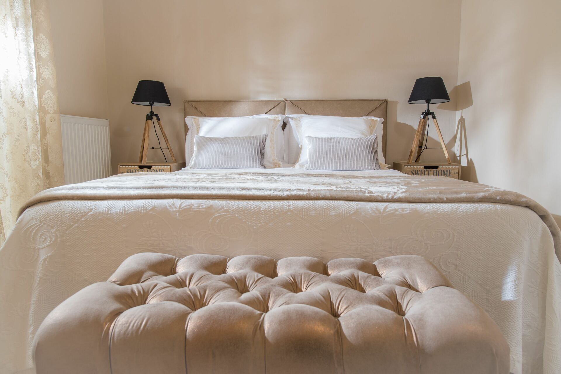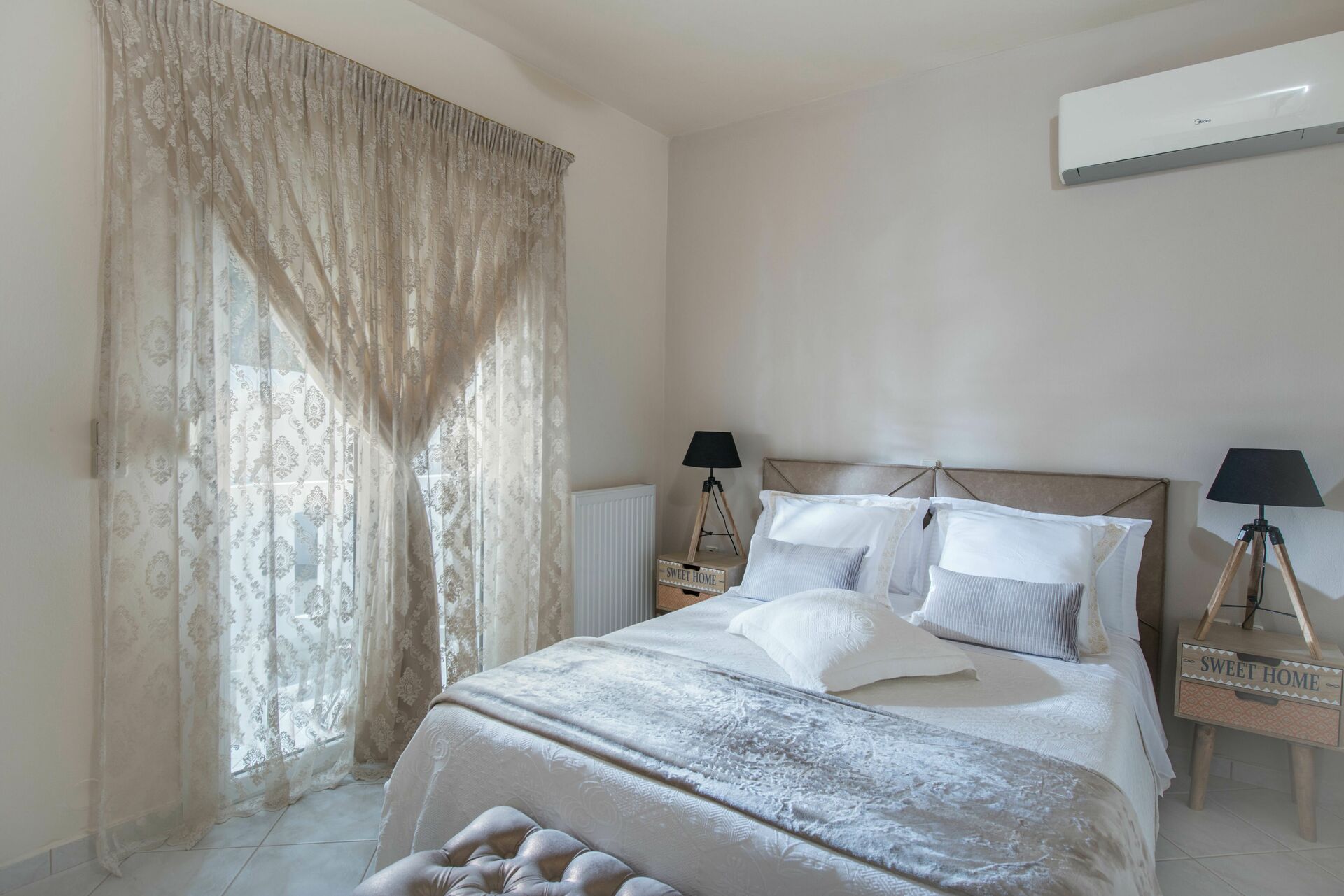 3 dobbeltrom med balkong; 1 soverom med enkeltseng, bad med badekar og walk-in garderobe.
