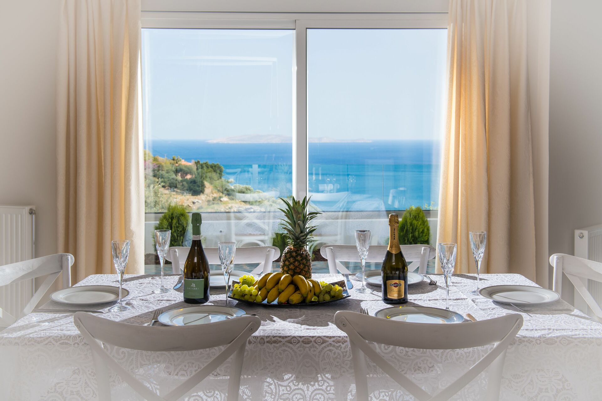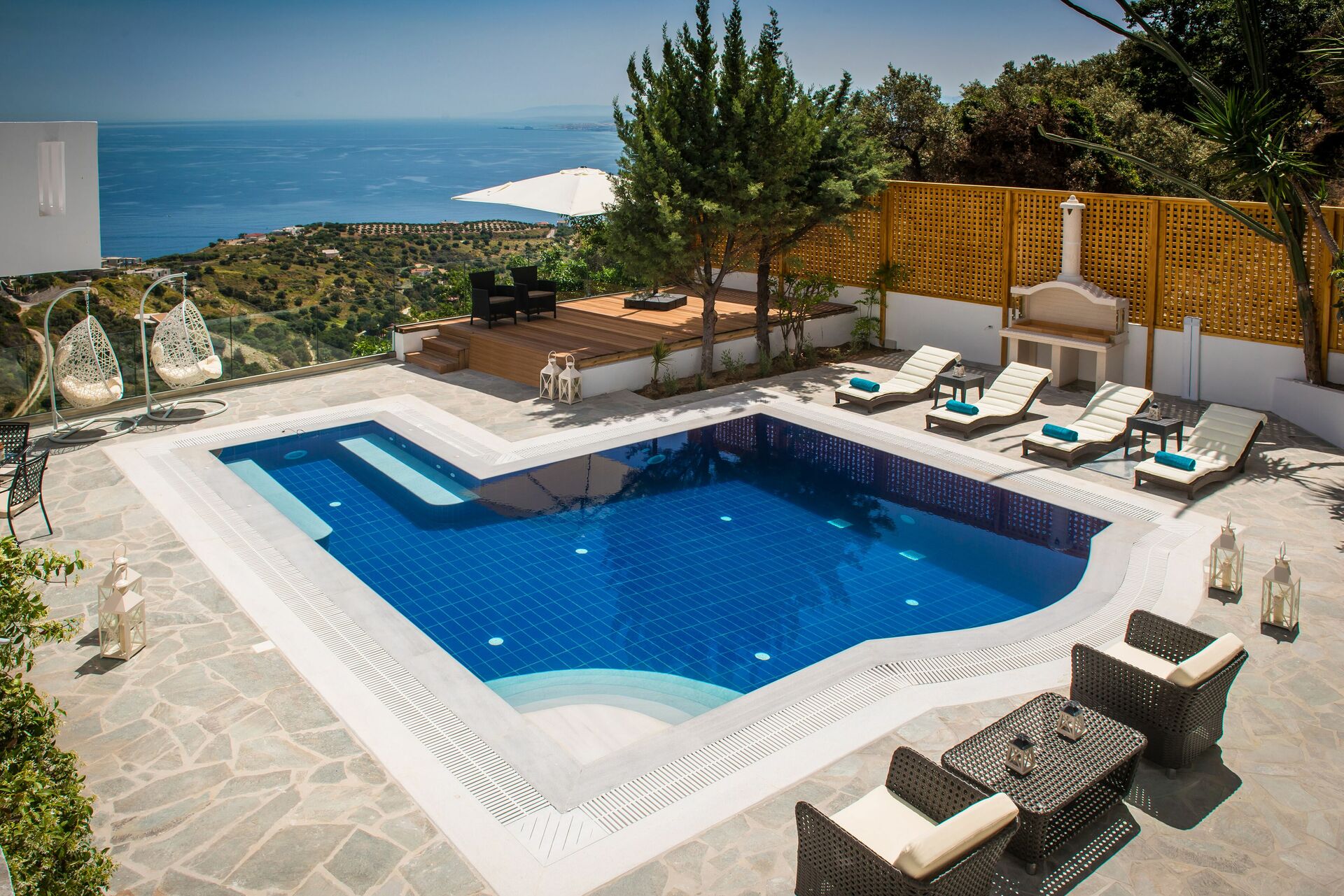 Feriehuset har en nydelig hage full av eksotiske blomster og frukttrær. Huset har en fantastisk utsikt over Egeerhavet og landsbyen Rodia, oppkalt etter en gammel kirke som dateres tilbake til den venetianske okkupasjonen i 1553.