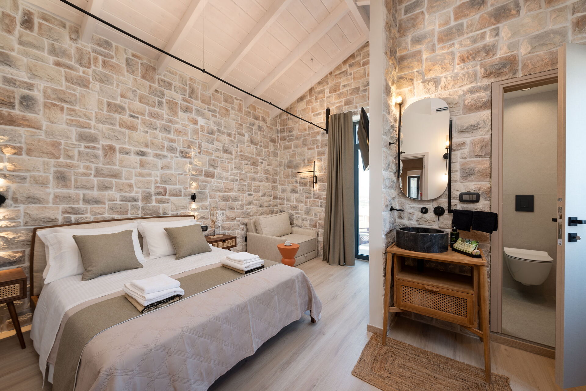 1 dobbeltrom (klimaanlegg) og eget bad med dusj.